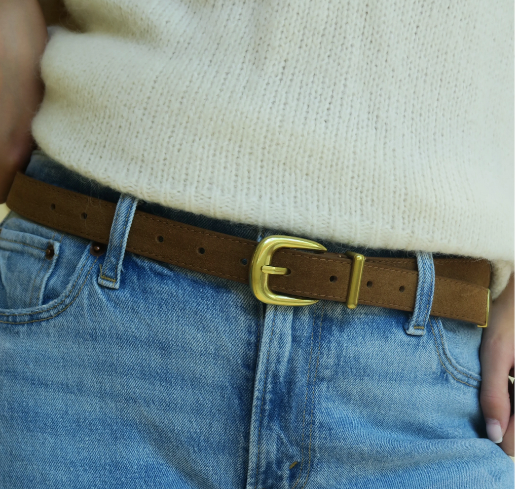 Modern Edge Suede Belt - Brown