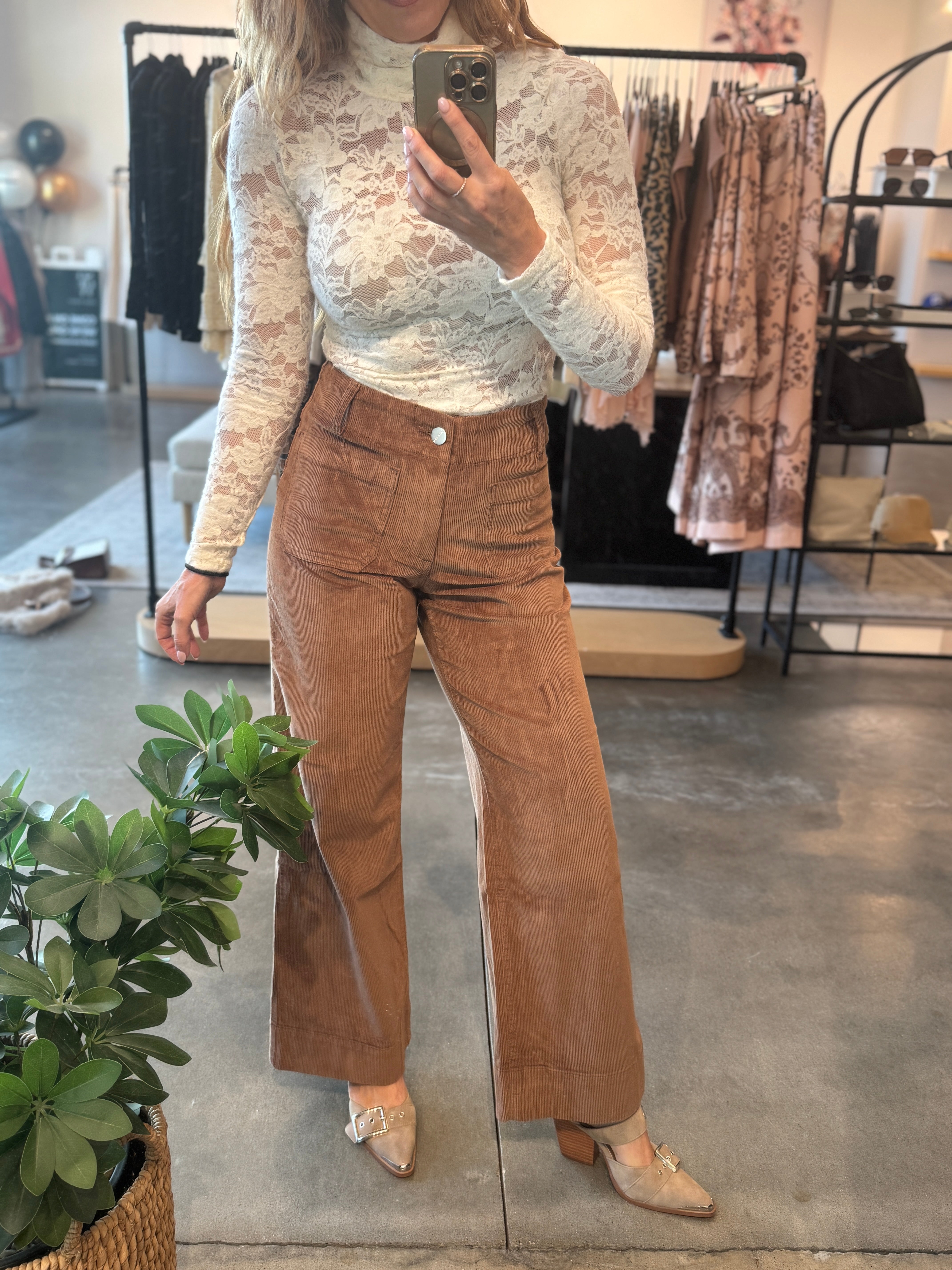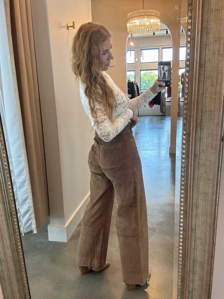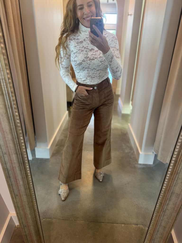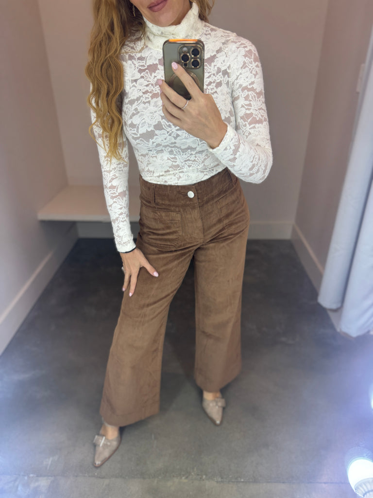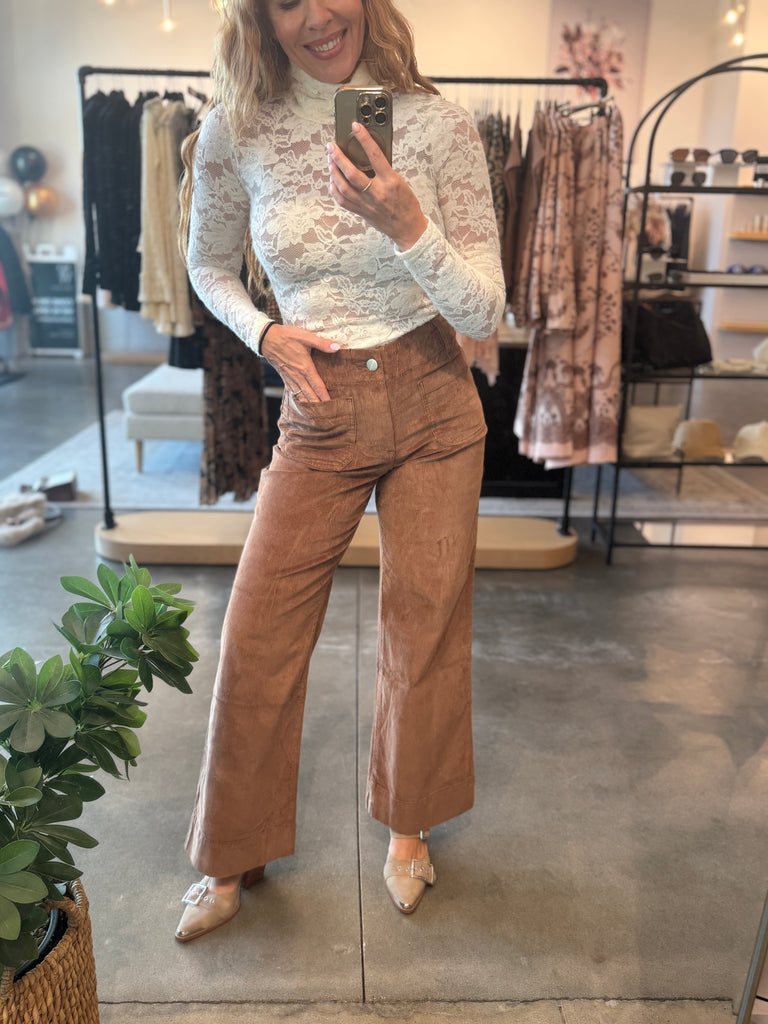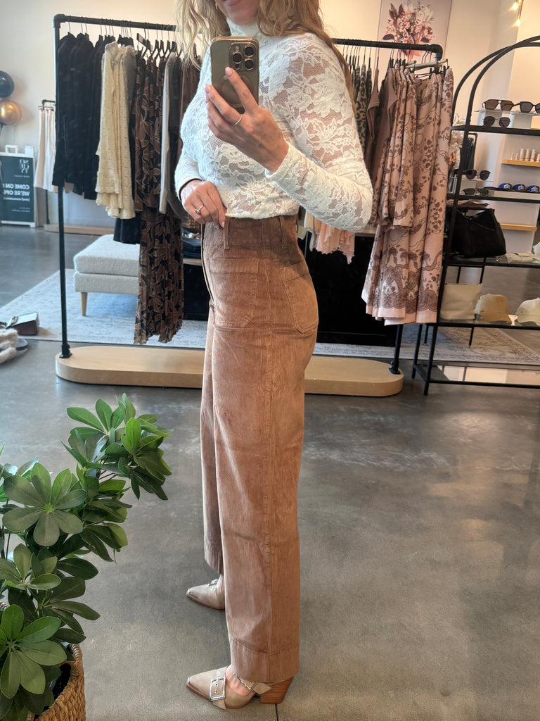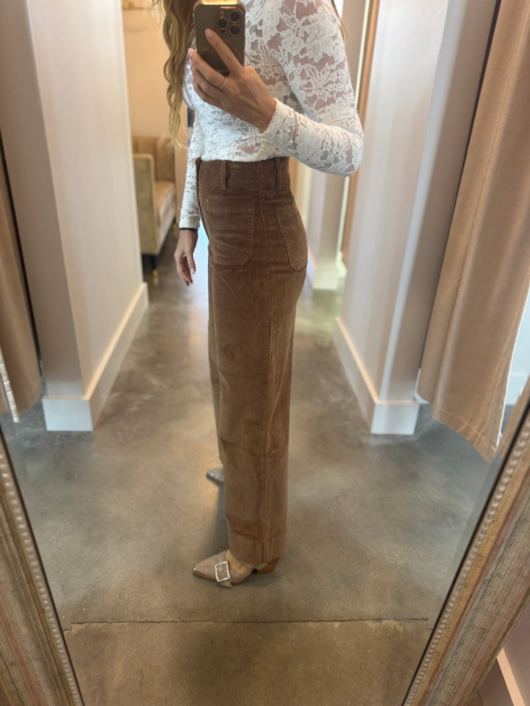 Colette High Rise Front Pocket Corduroy Pant - Cognac