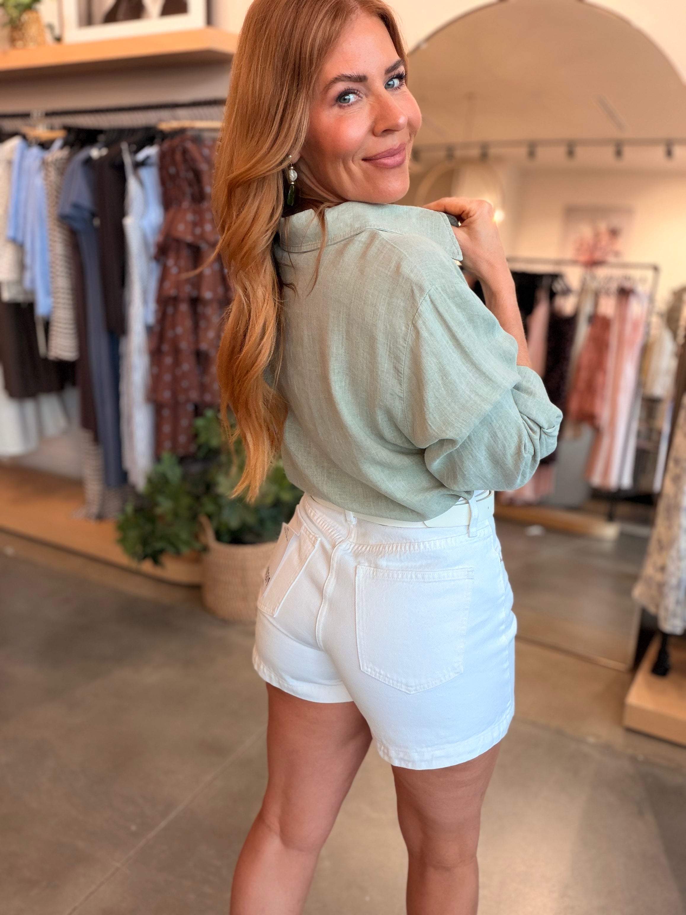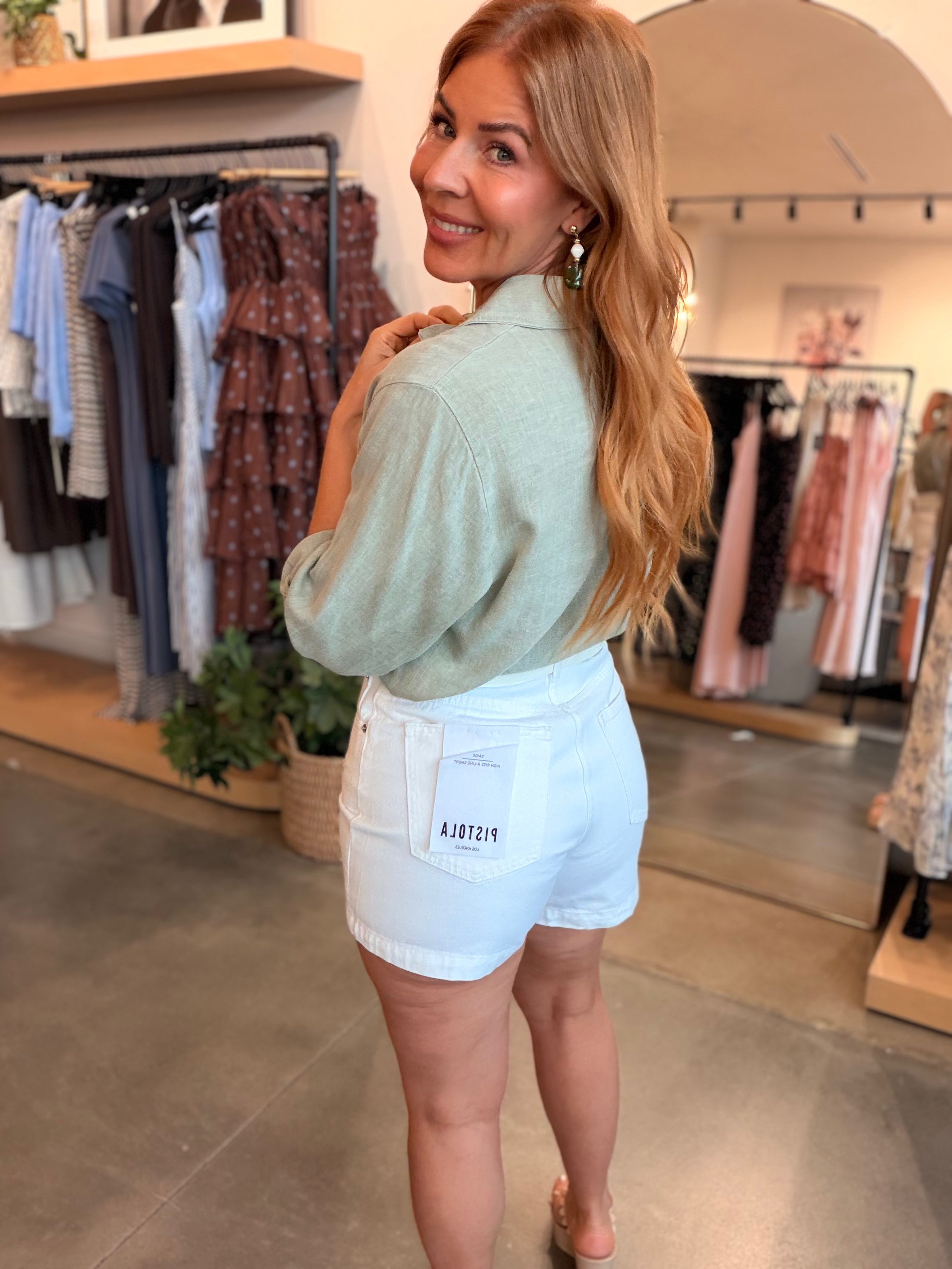 Saige High Rise A-Line Short - White