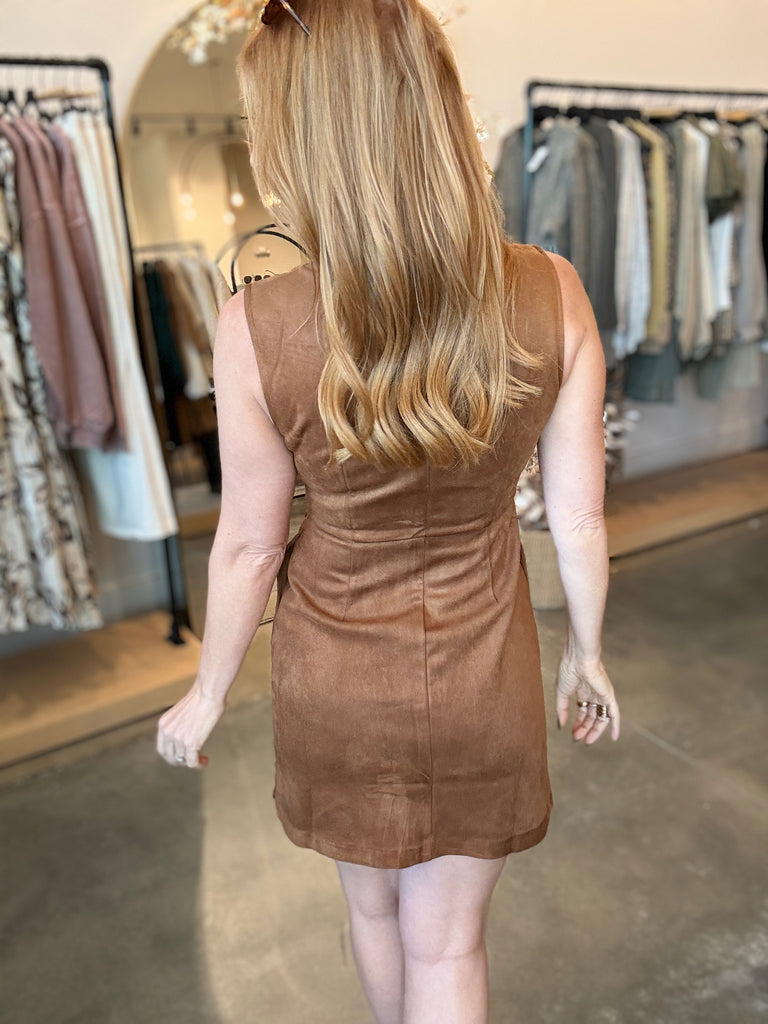 Sleeveless Button-Down Suede Dress