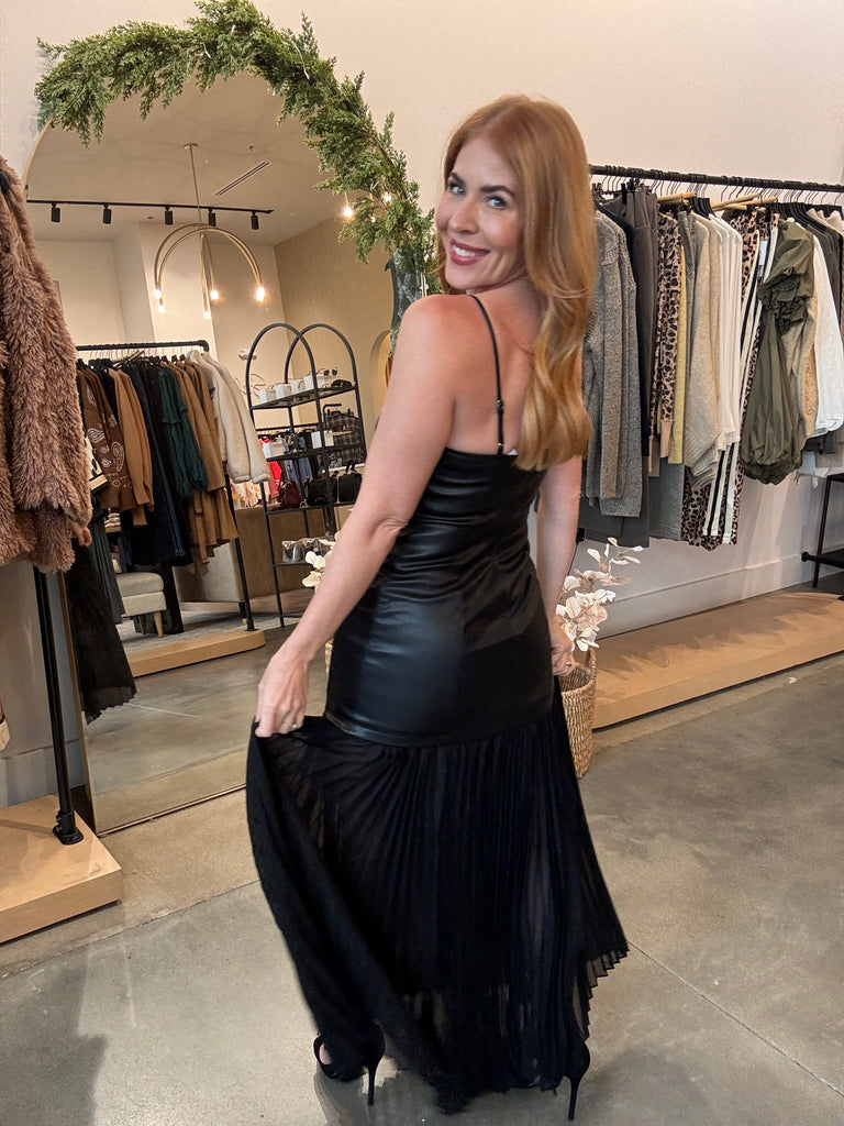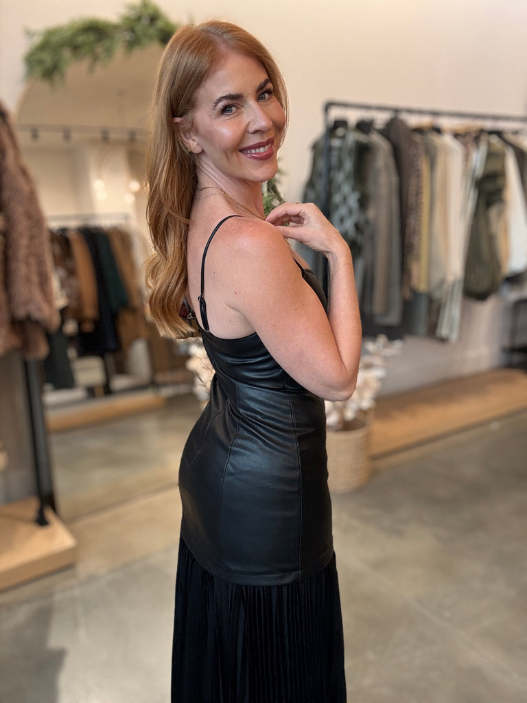 Slip into the Lezith Leather Drop Waist Dress for an effortlessly chic look that hugs you in all the right places. This true-to-size stunner features a flattering drop waist silhouette that's equal parts sultry and sophisticated. Perfect for nights when you want to turn heads and feel absolutely fabulous.