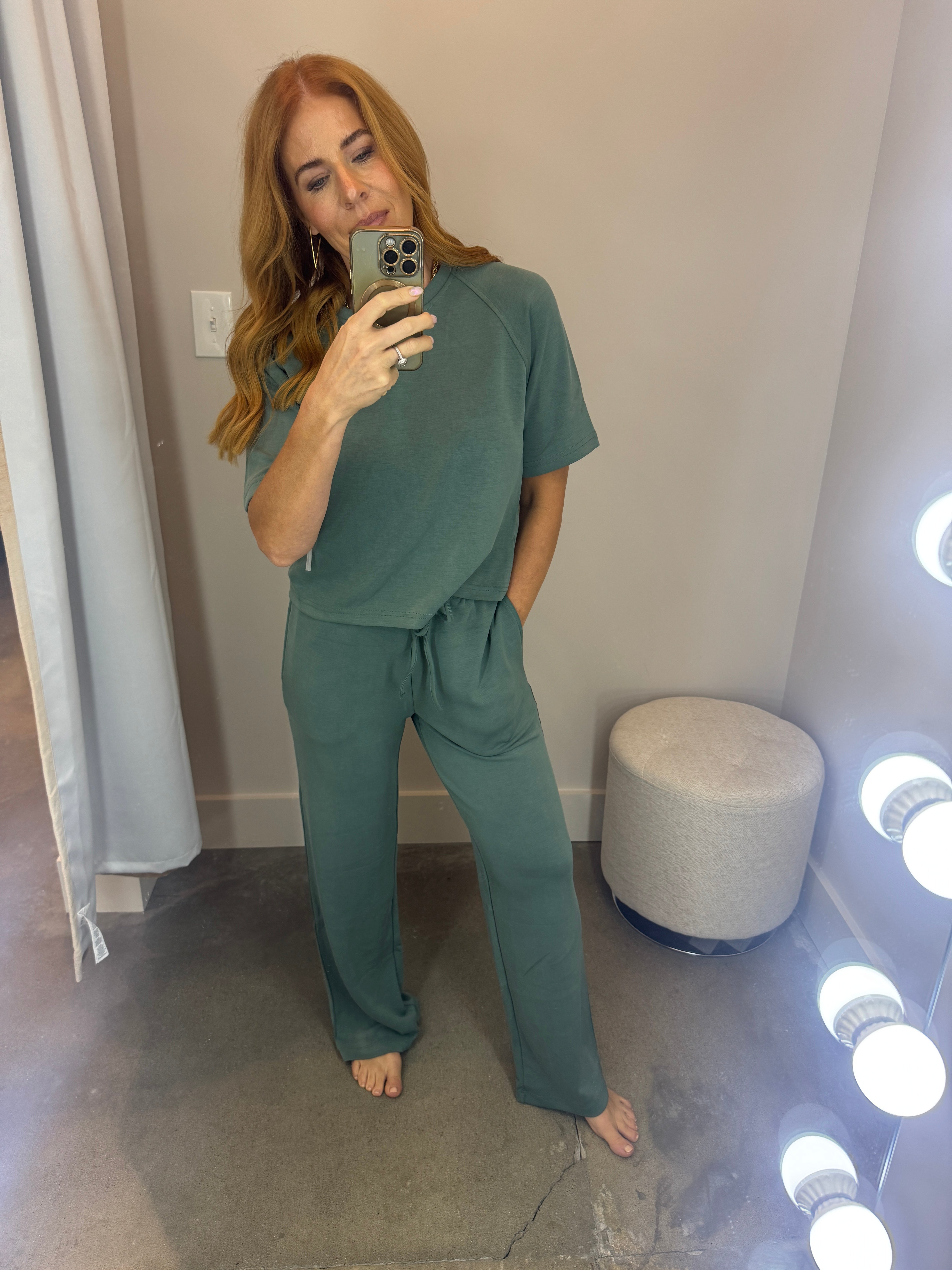 Slip into the Ultimate Lounge Pants in Silky Pine—your new go-to for cozy vibes. They fit just right and feel unbelievably soft, plus they come with a cute drawstring waist for that perfect snug fit.