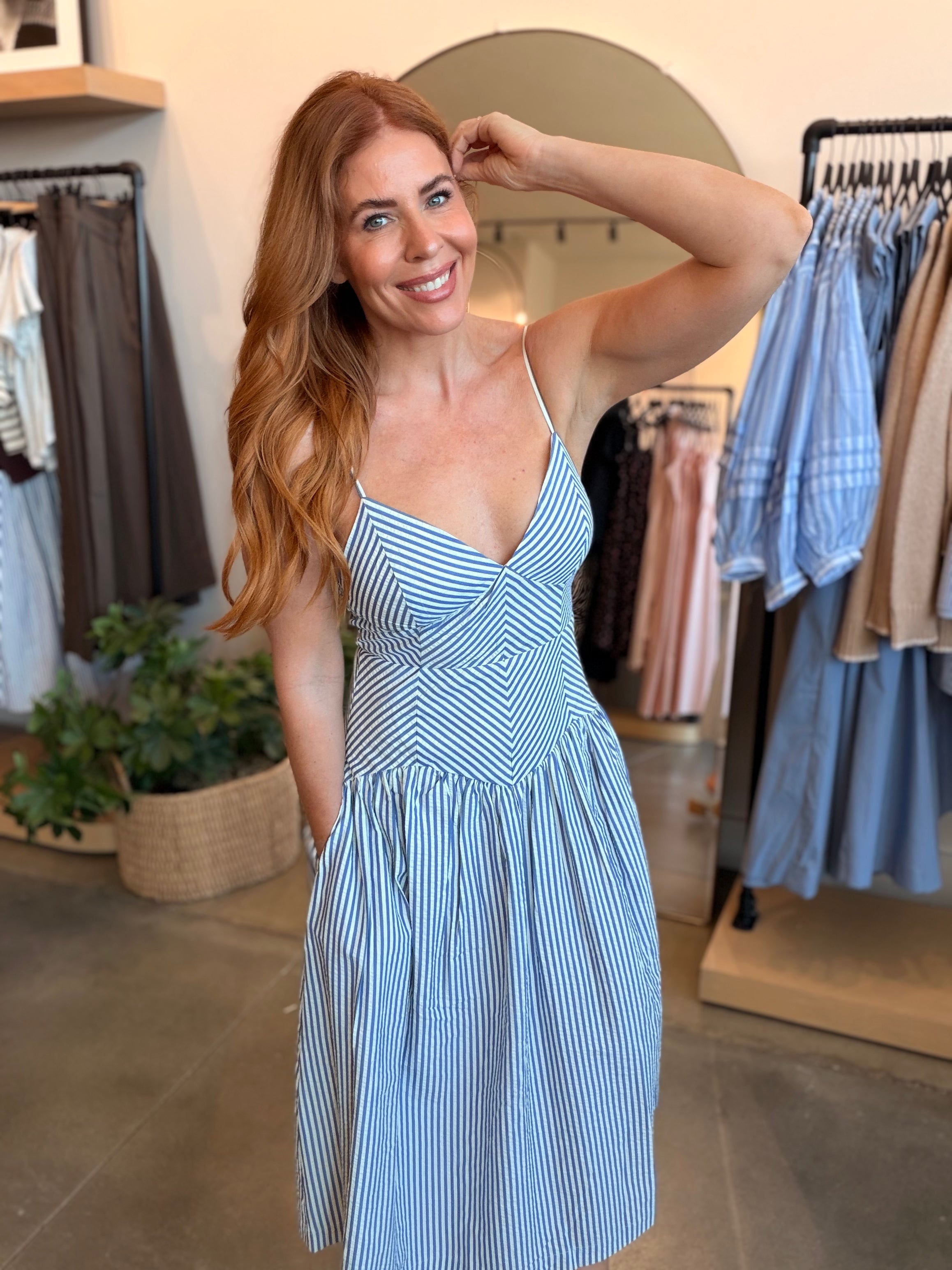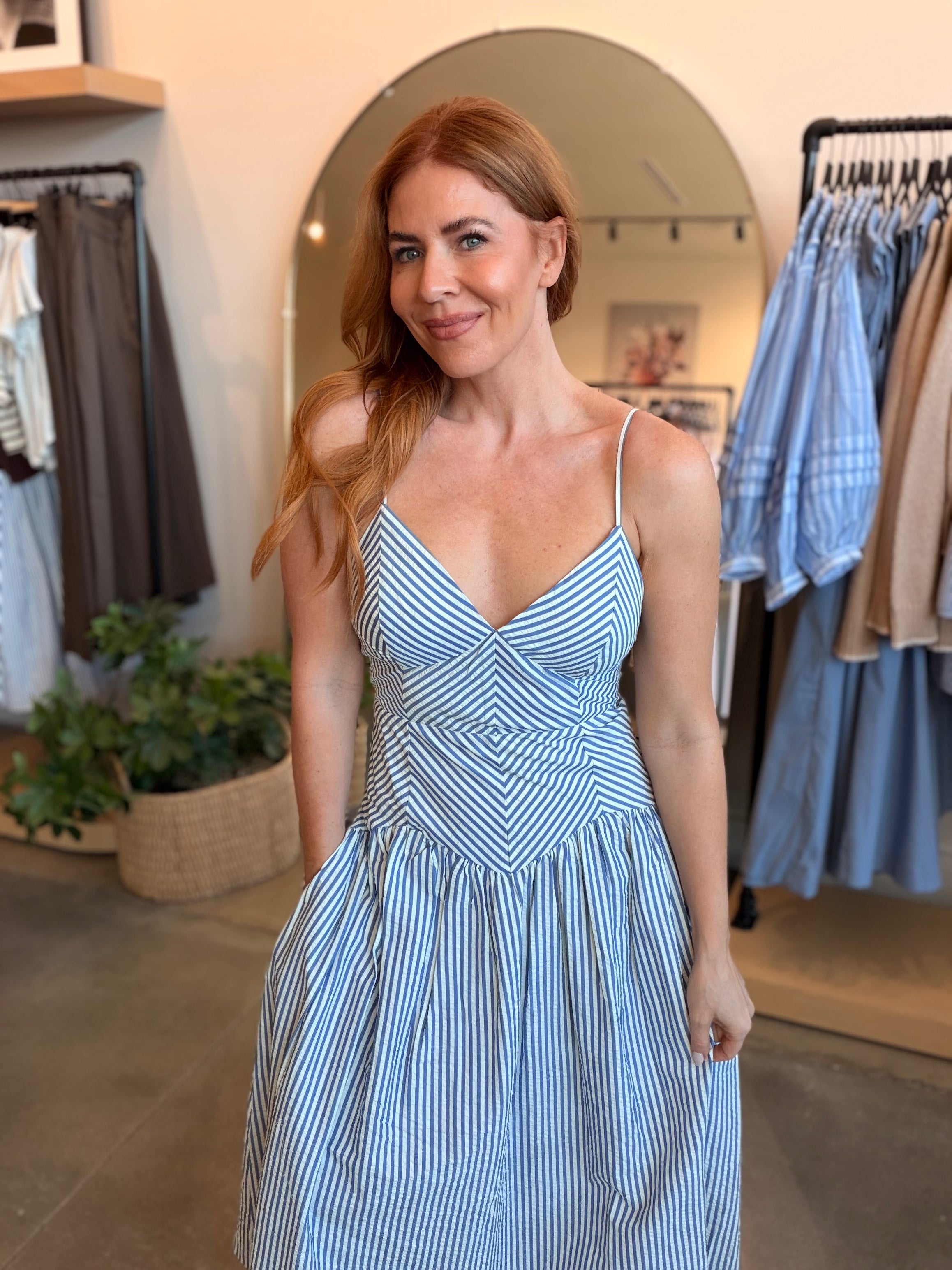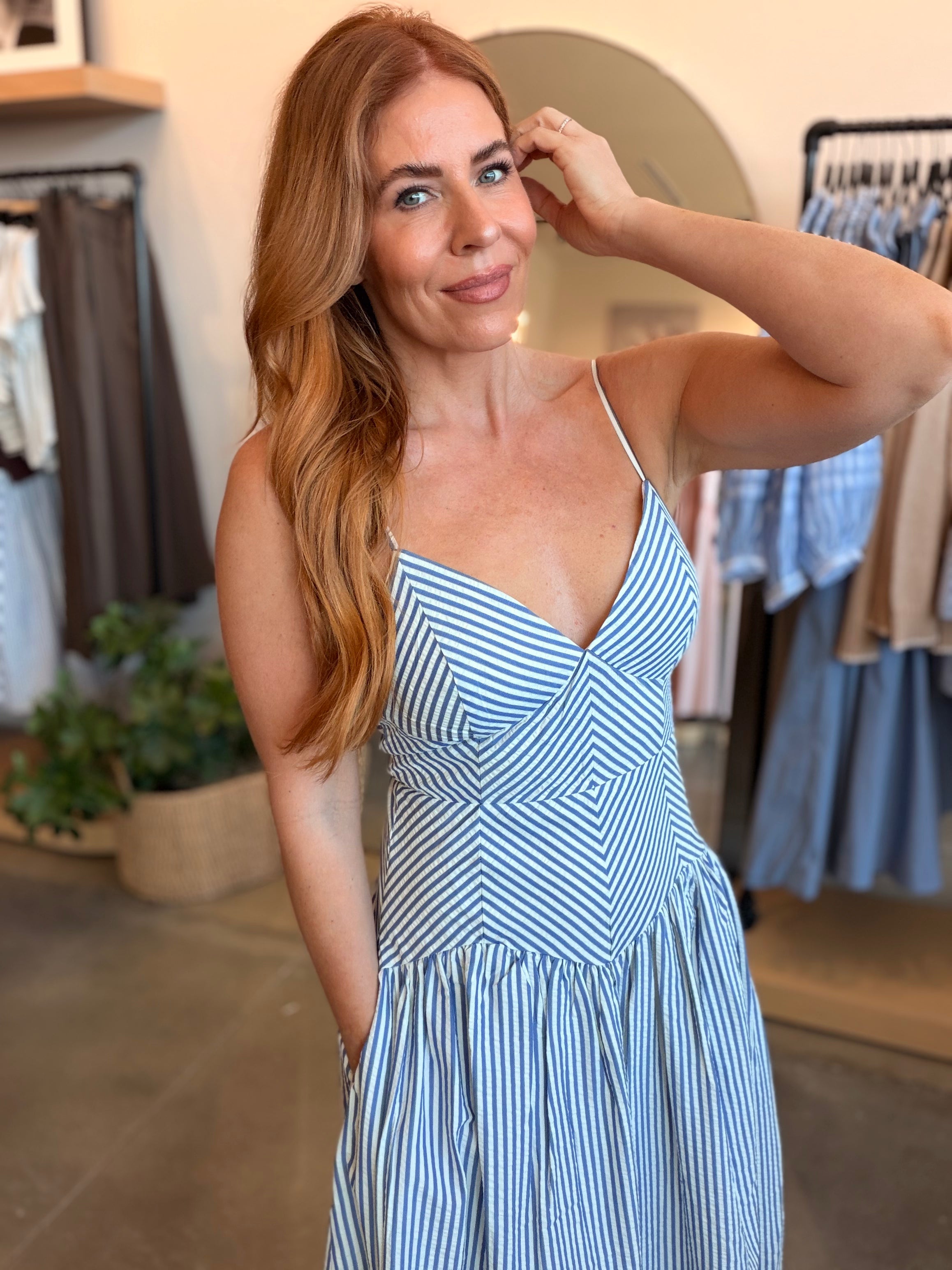 Striped Blue & White Maxi Dress