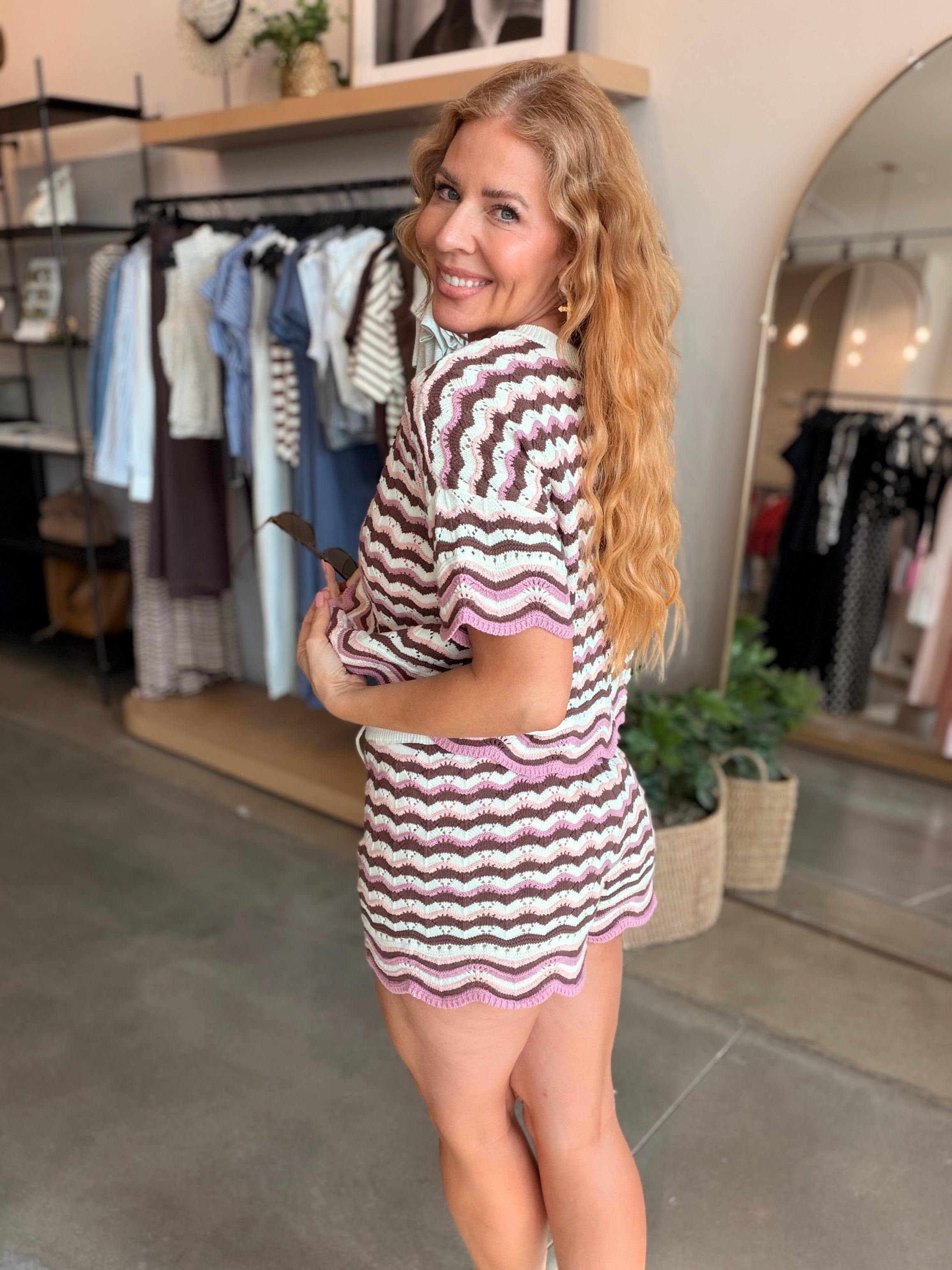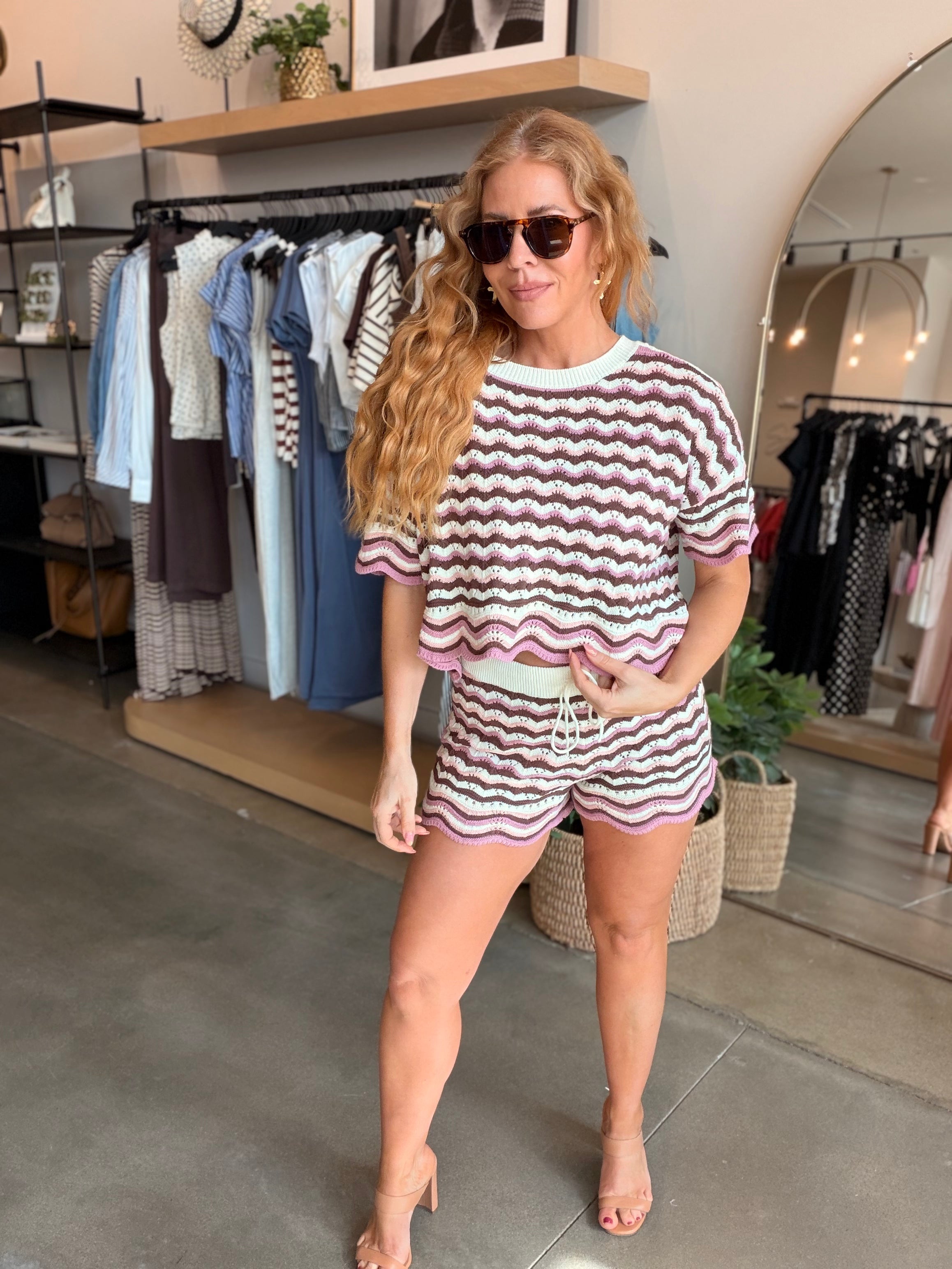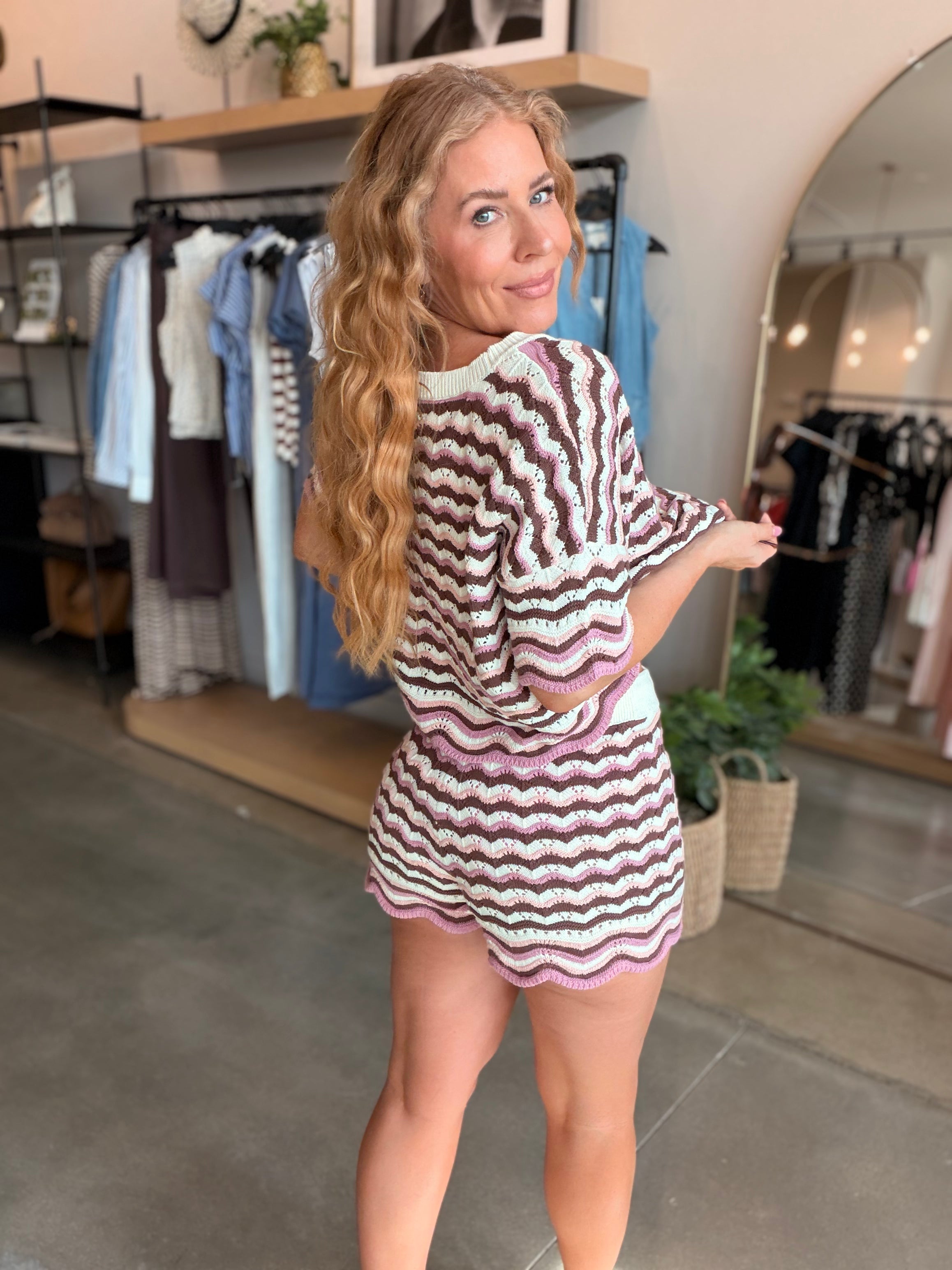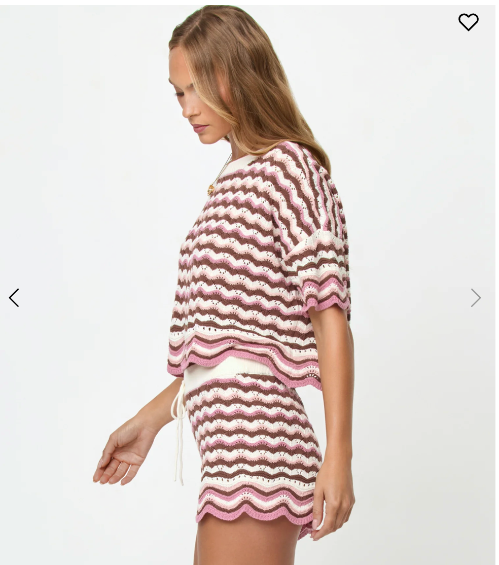 The Sunchaser Top is an effortless pick that looks perfect when paired with a bikini or the matching shorts. The cropped fit, colorful crochet knit, and scalloped hem and drawstring waist will have you reaching for it all the time. A new peach, cream and blue colorway has entered the chat and we are crushing big time.