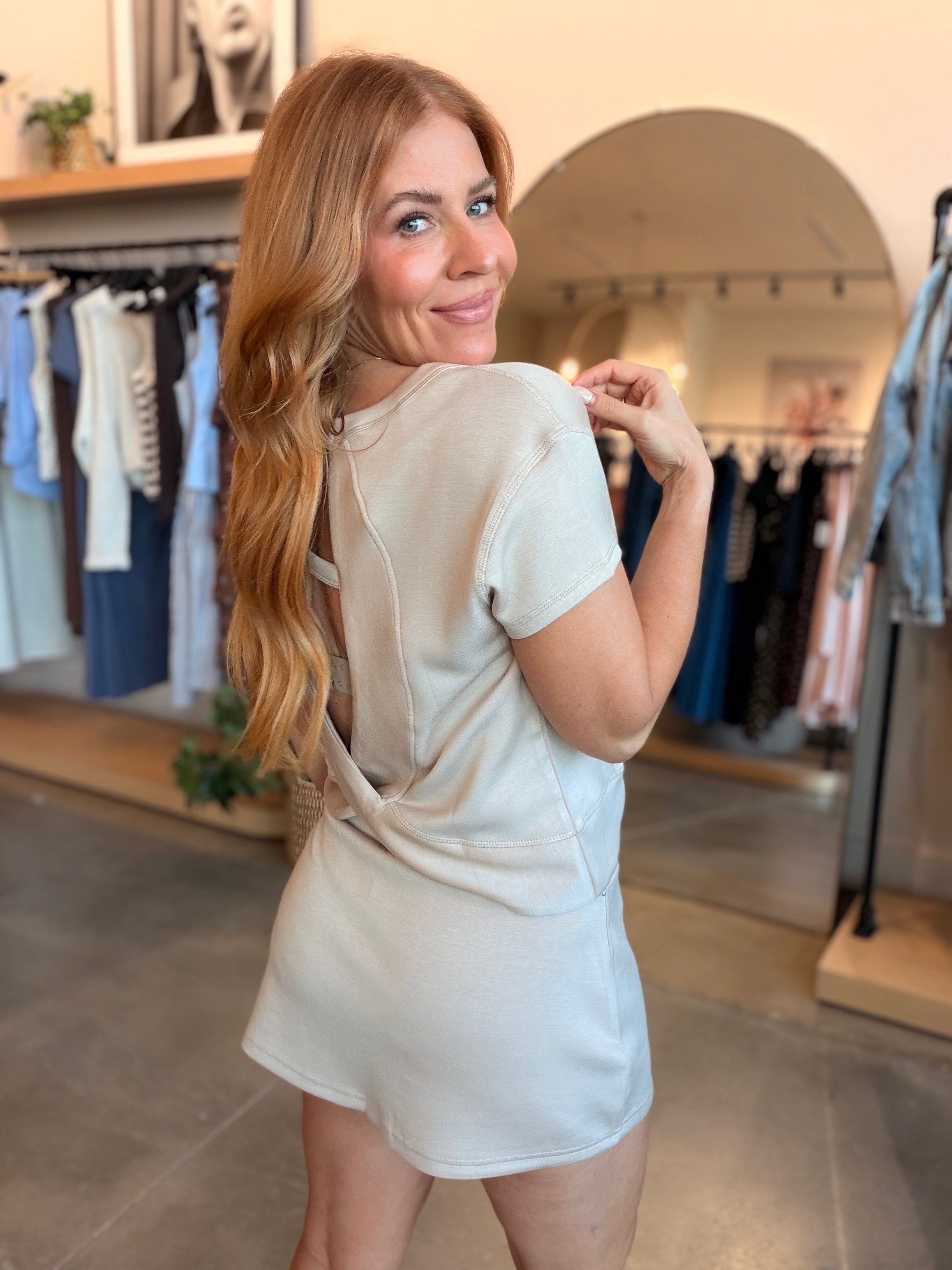 Cloud Fleece Open Back Top - Light Clay