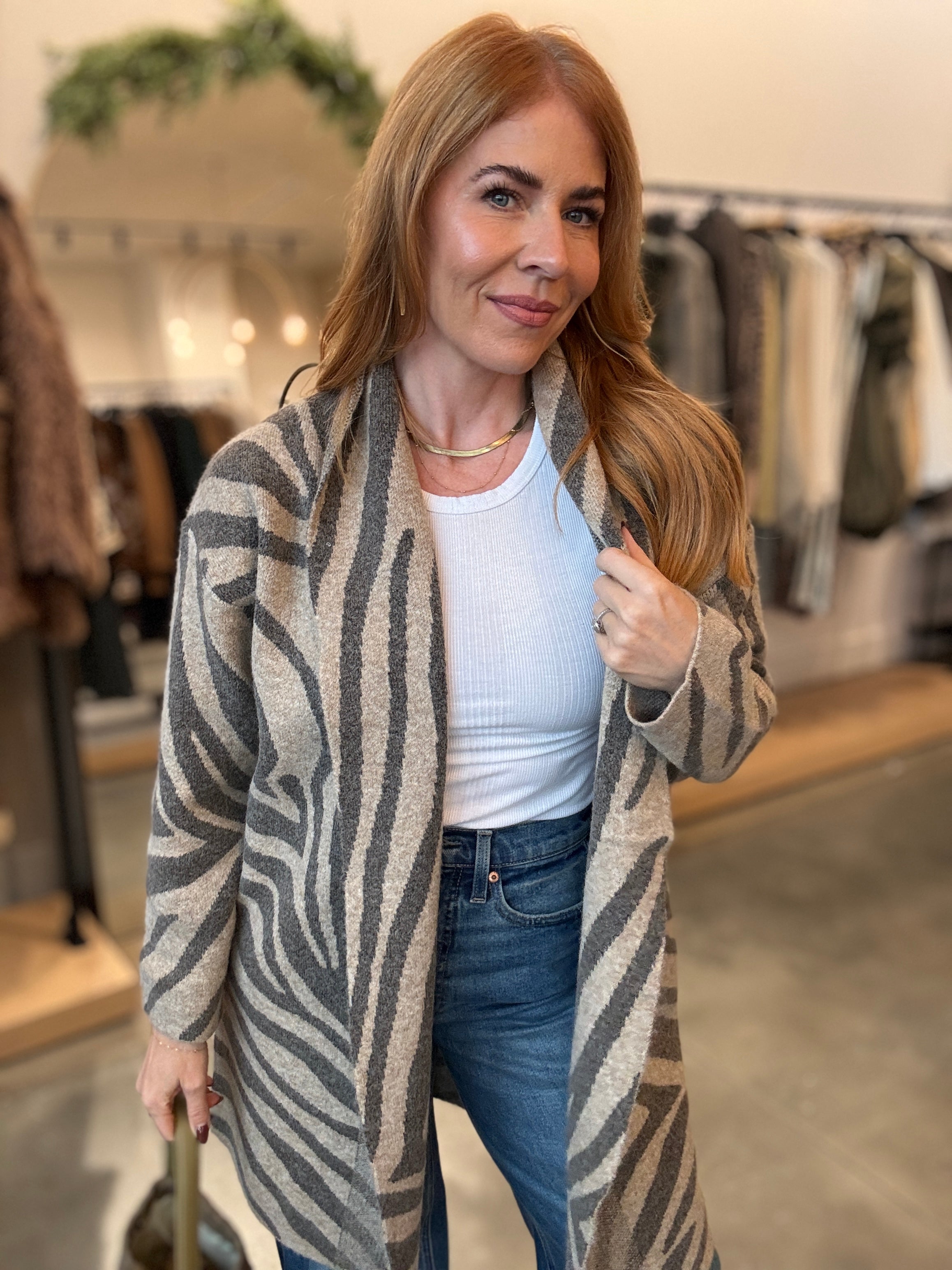 This oversized cardigan brings effortless style to your autumn rotation with its faded brown zebra print and relaxed silhouette. Crafted from soft, cozy fabric, it's the perfect layering piece for crisp fall days when you want comfort without compromising on looks.