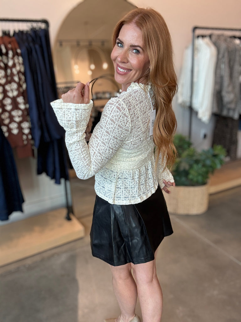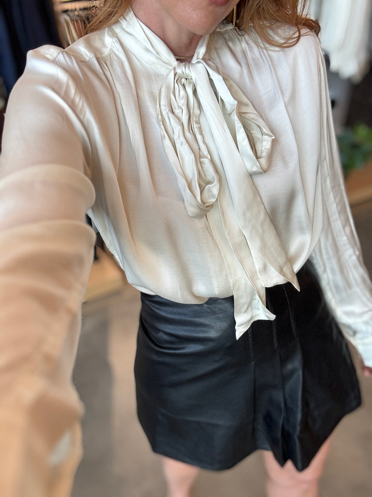 The Lana Pleated Leather Skirt has a true-to-size fit, as observed by Andrea wearing a small. It features a high waist and a side zipper for easy wear. Crafted from premium materials, this skirt offers the feel of genuine leather and boasts excellent quality.