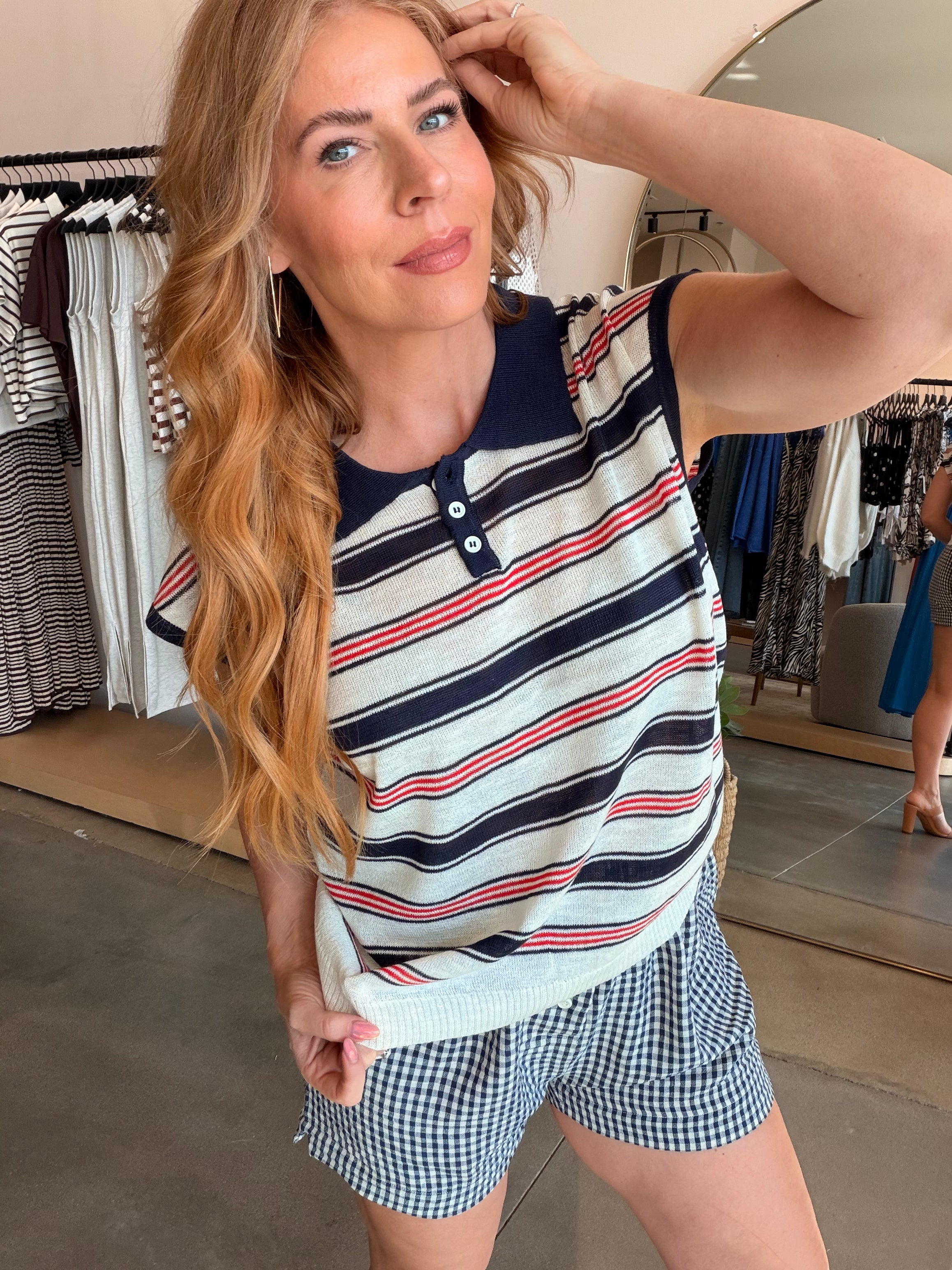 Kate Striped Navy/Red Thin Knit Top