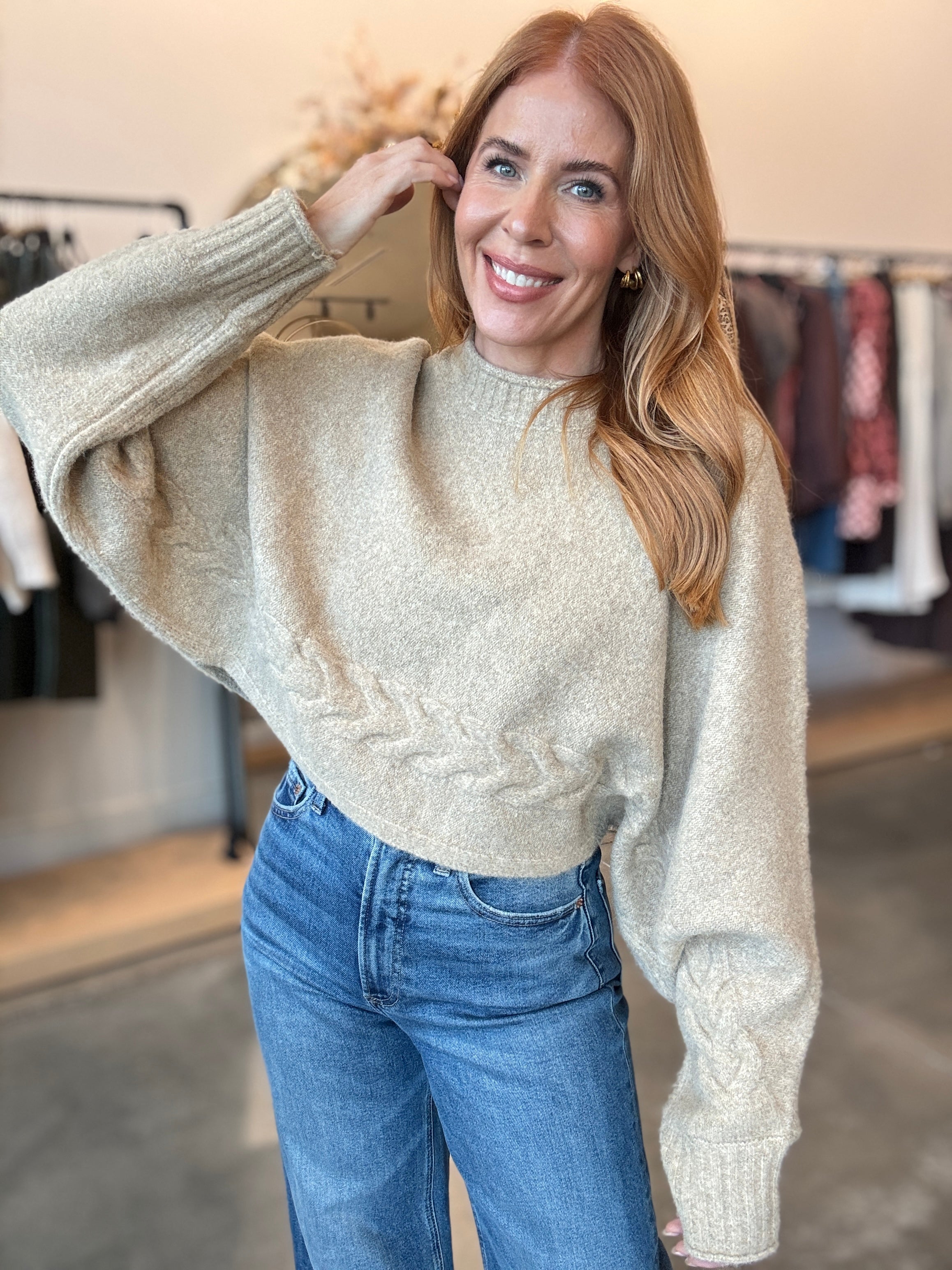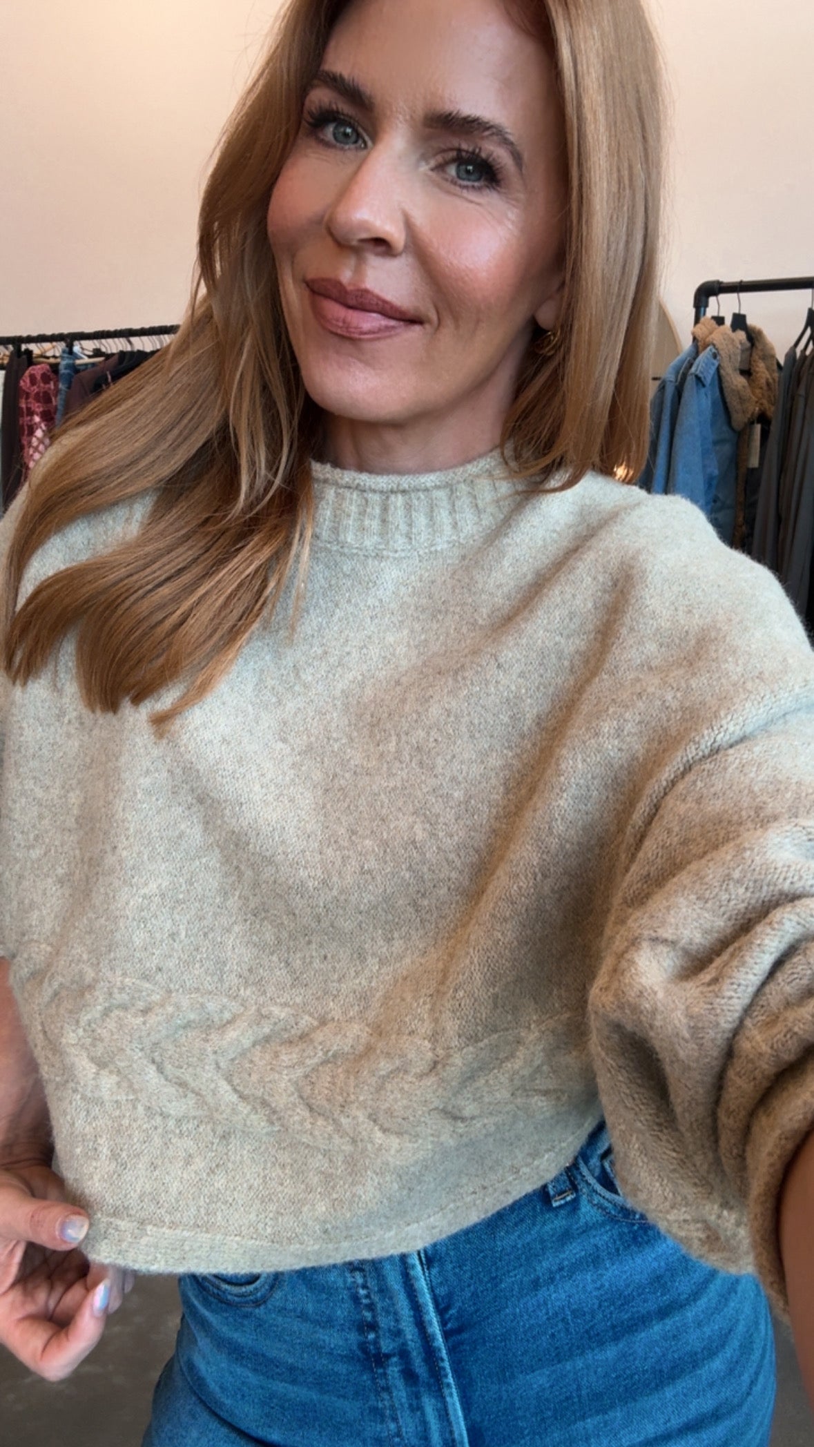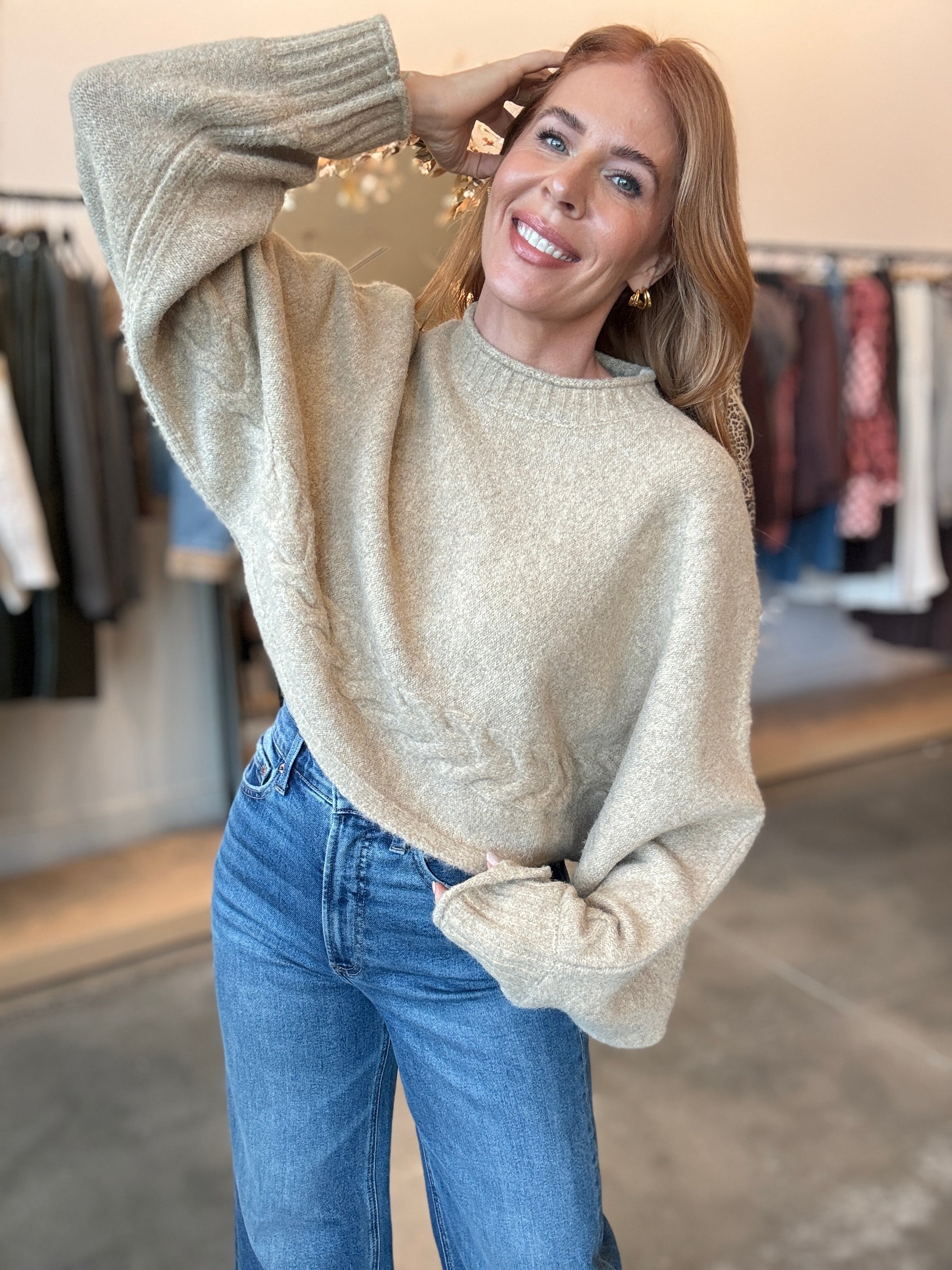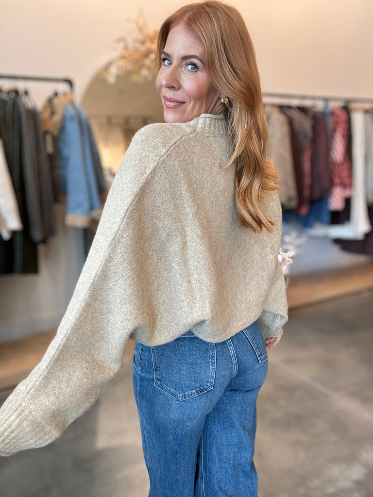 The Beige Melange Everyday Sweater is your perfect match. It features roomy, wide sleeves paired with a cropped, subtly tapered waist. Slip it on with jeans and you’re set for an effortlessly great day!