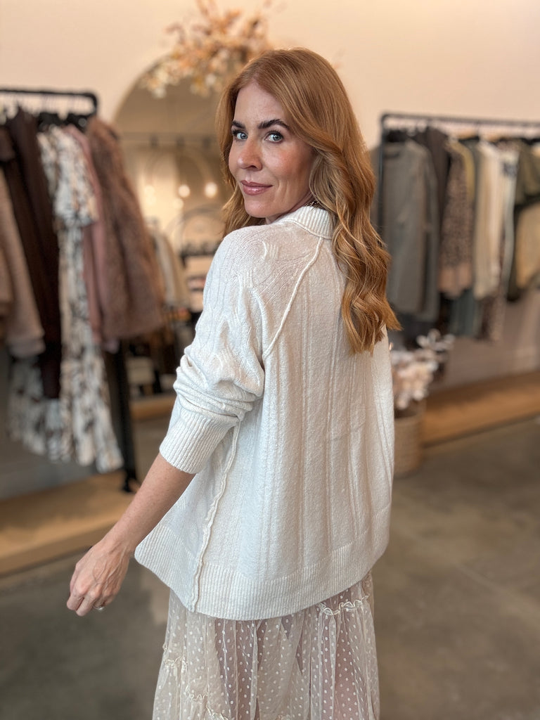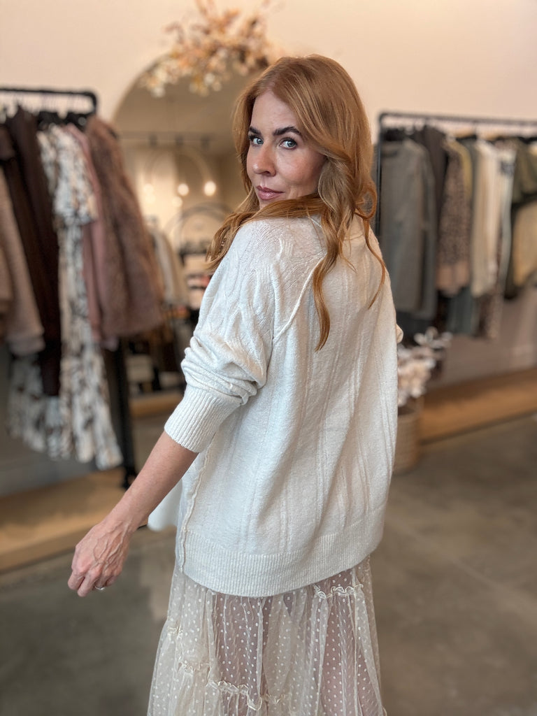 Whipped Cream Cred Neck Cable Knit Sweater