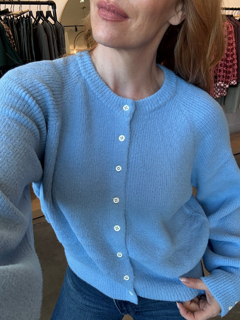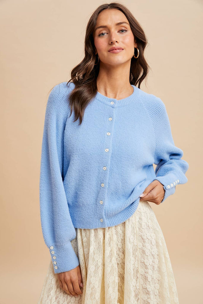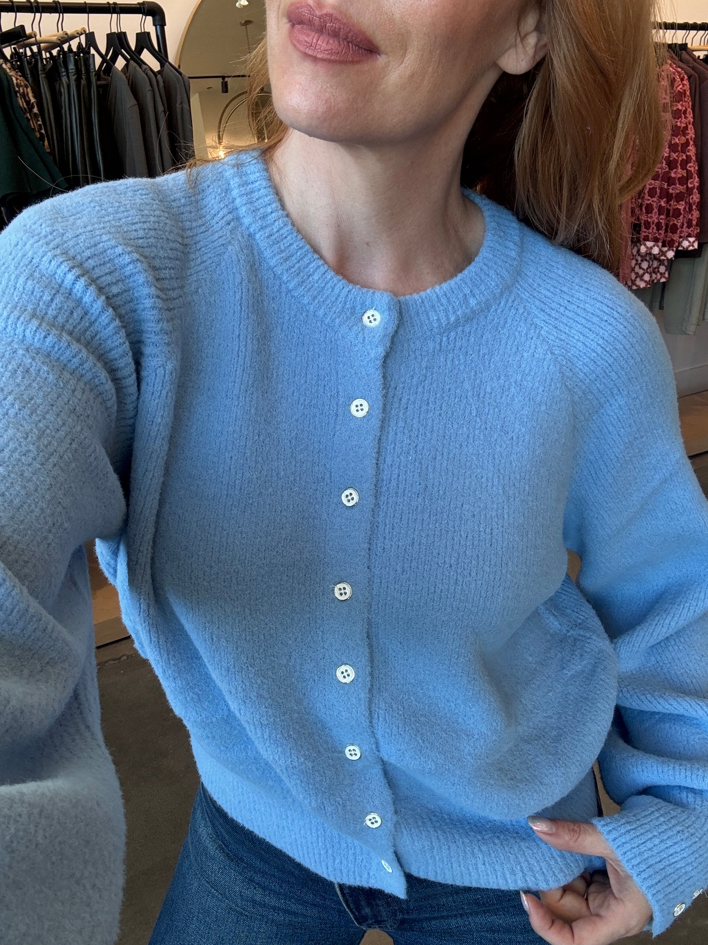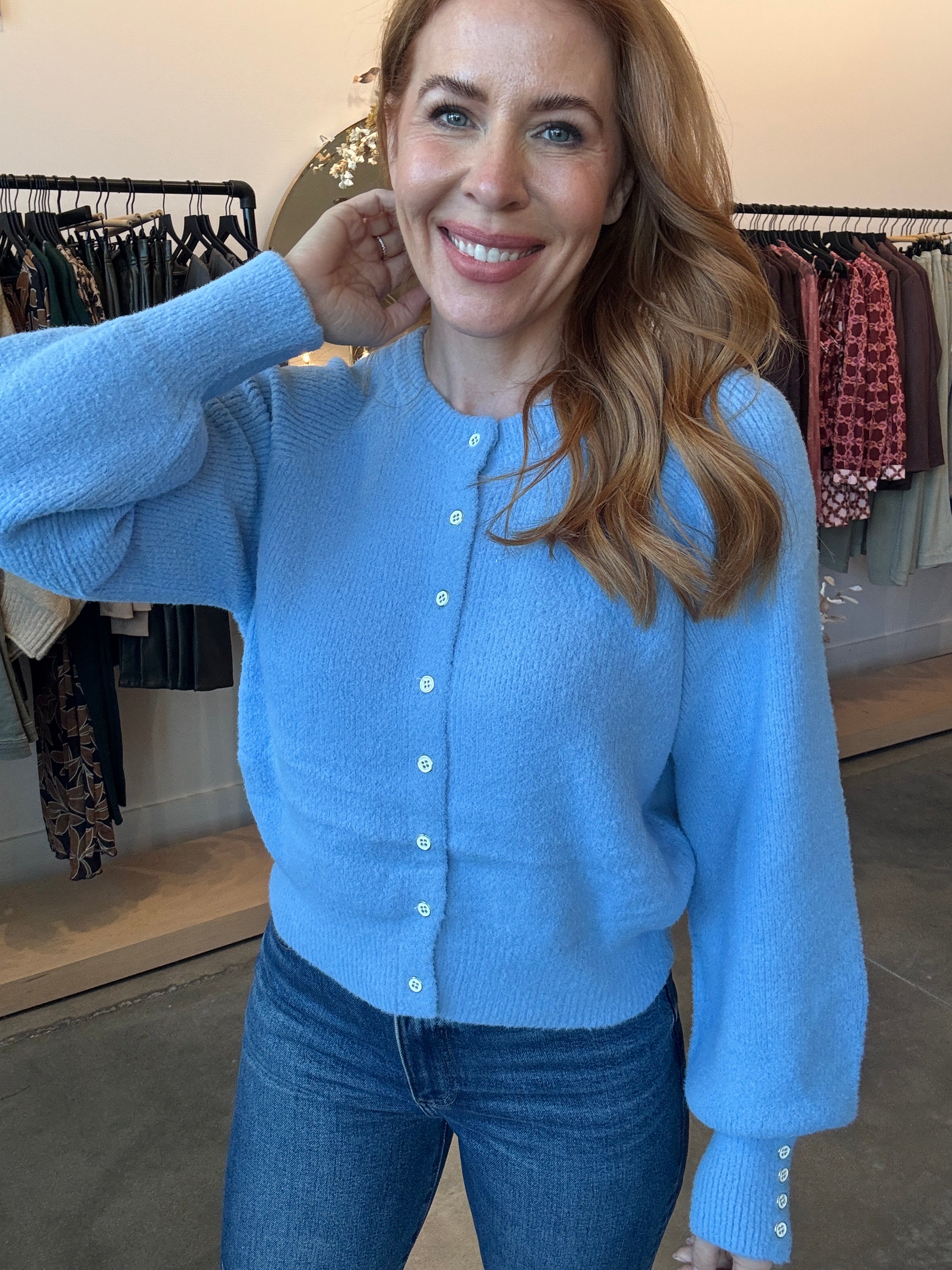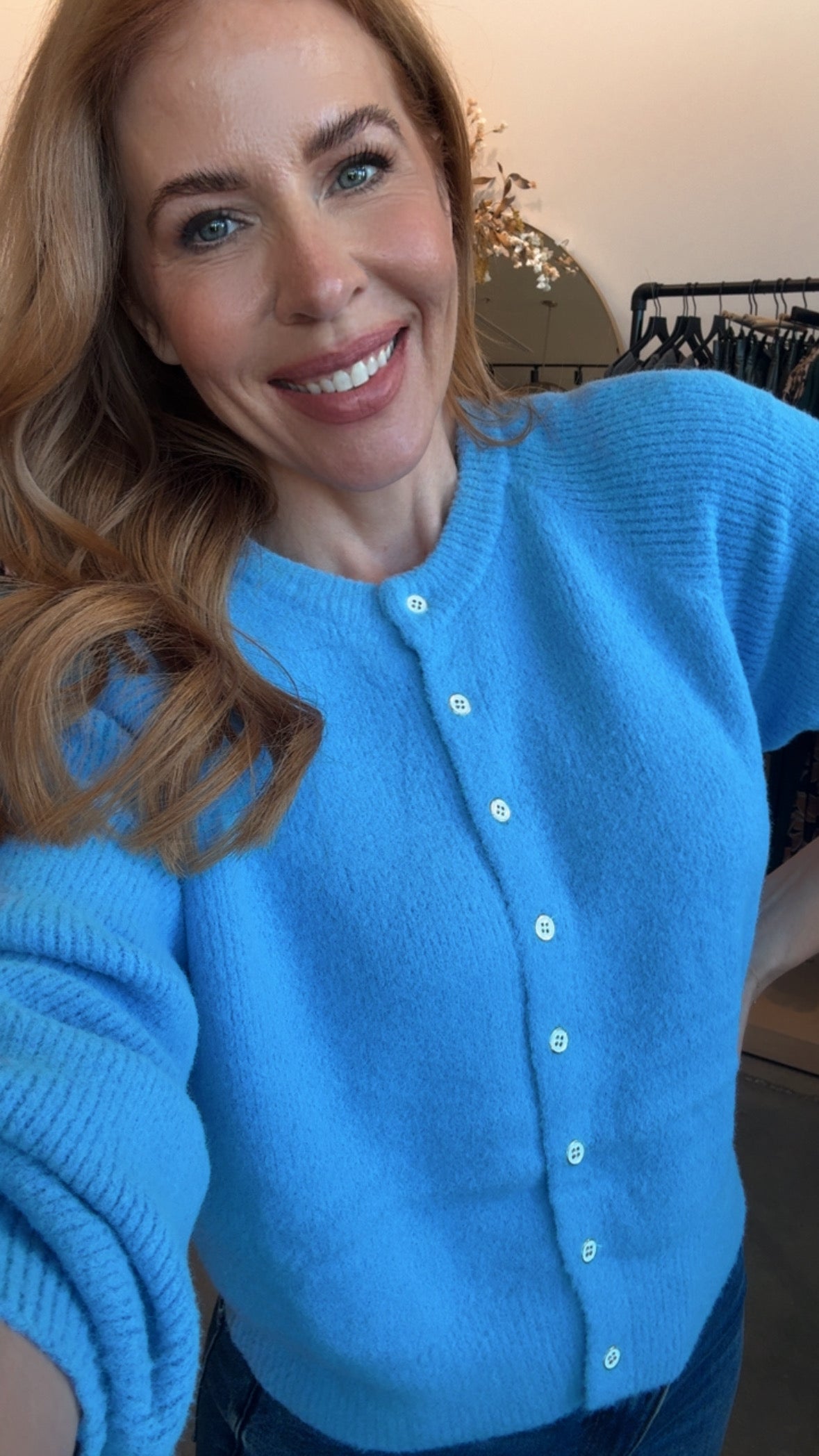 Cozy up in this Fuzzy Ribbed Knitted Cardigan, crafted from ultra-soft, springy fabric that's simply impossible to resist. Andrea’s rocking a size small!
