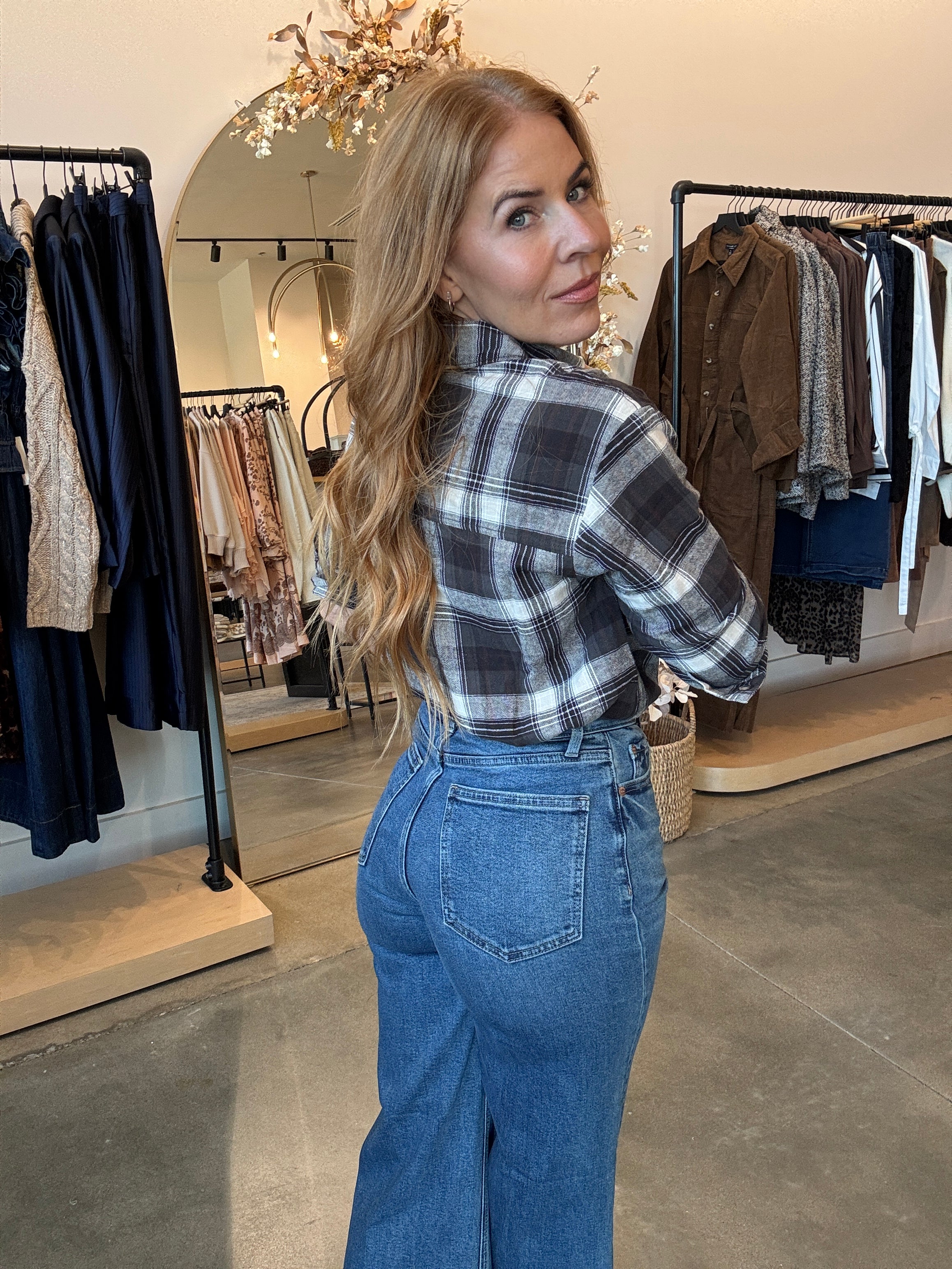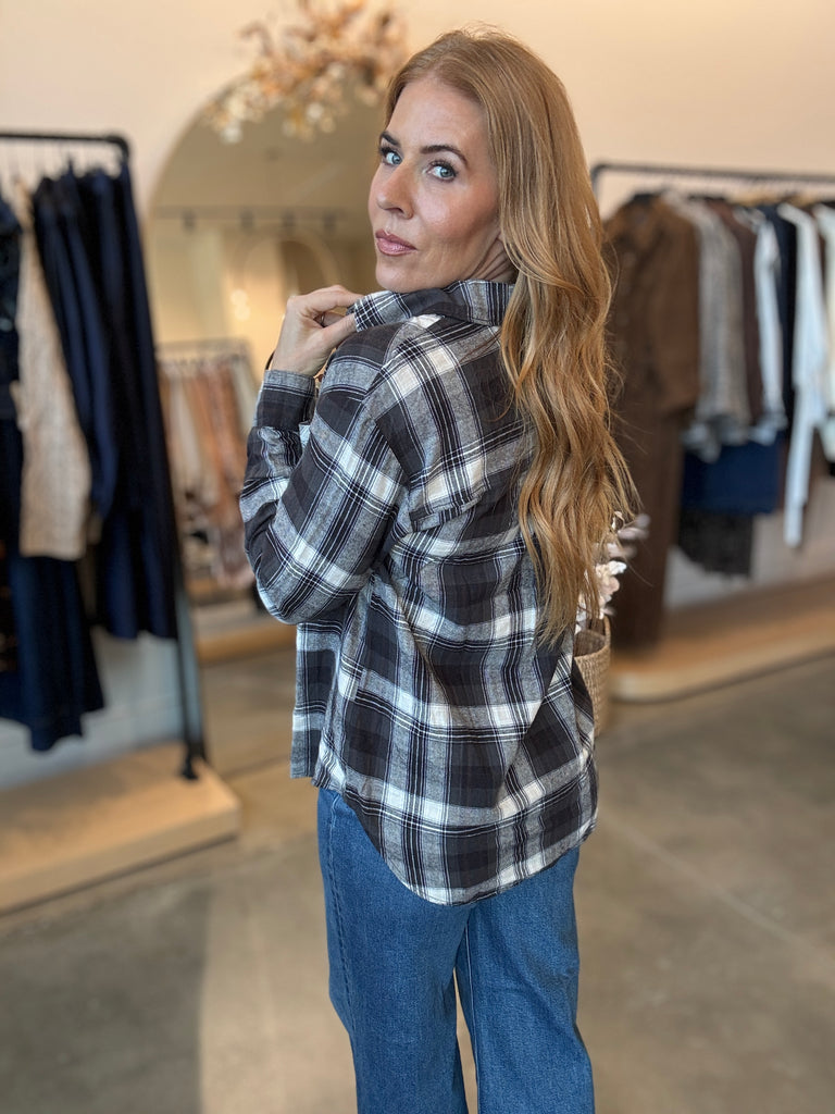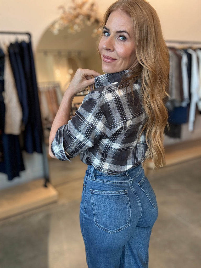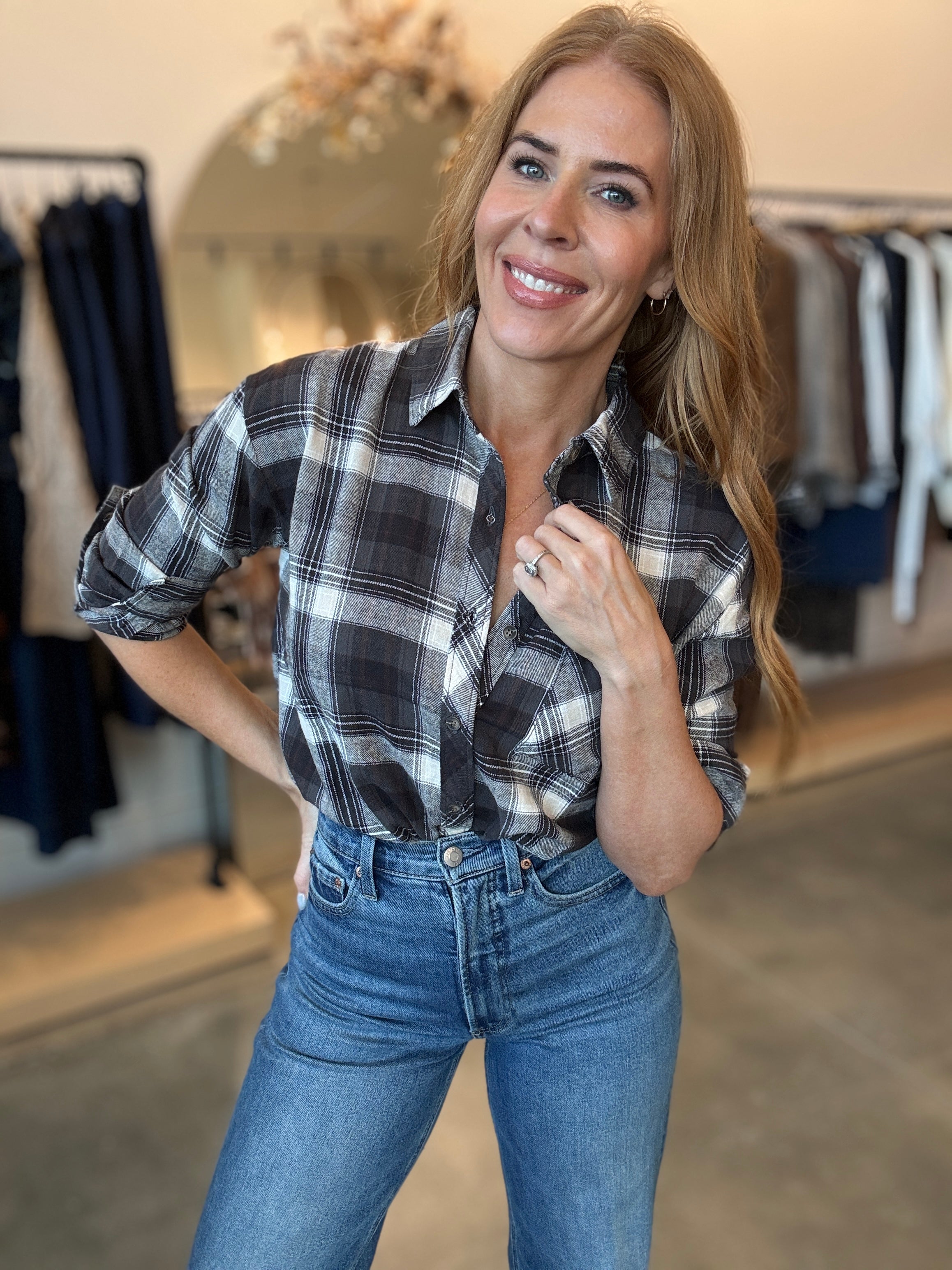Plaid Flannel Long Sleeve Button Down. Fits just right and offers the perfect length for layering or rocking it solo with style.