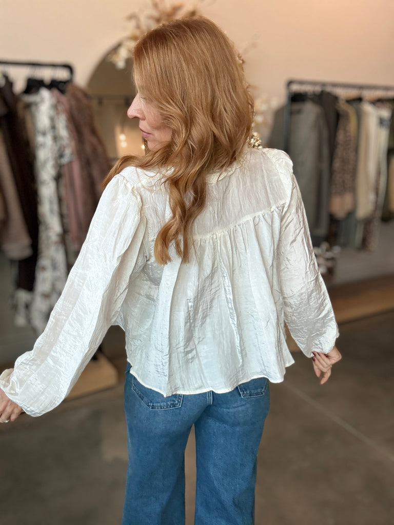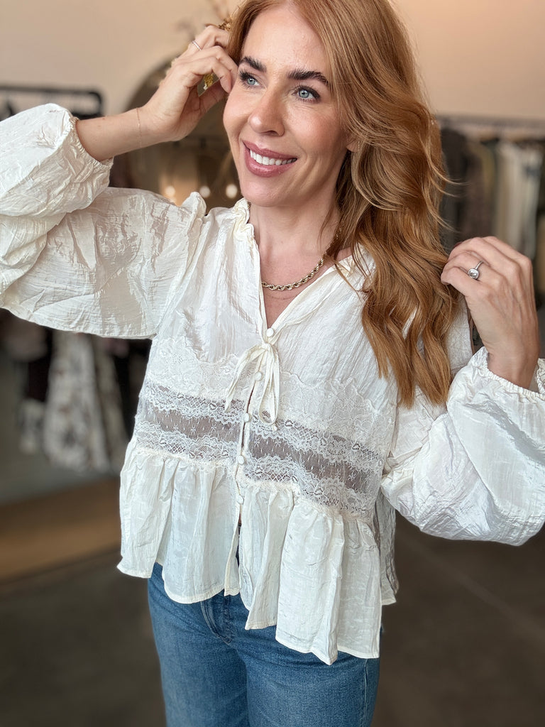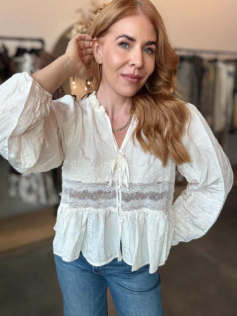 Romantic Off White Lace Cut Out Blouse