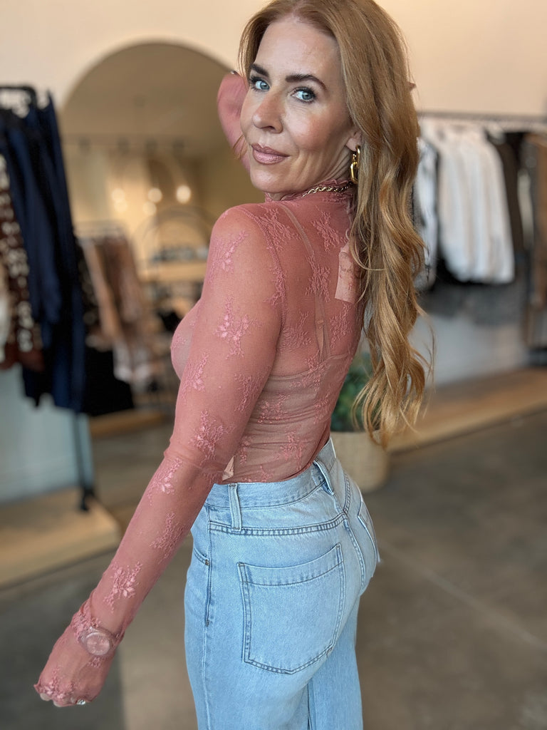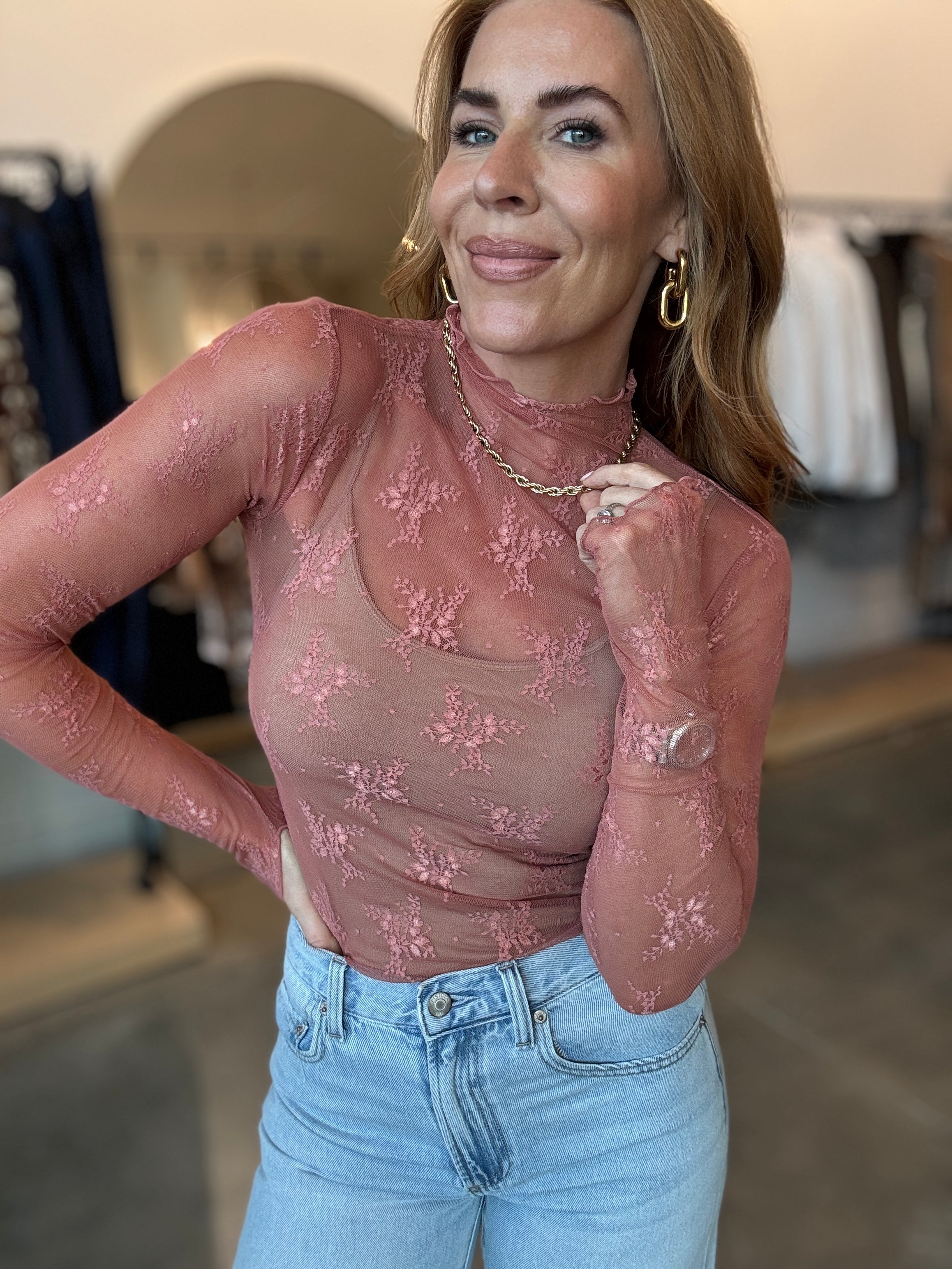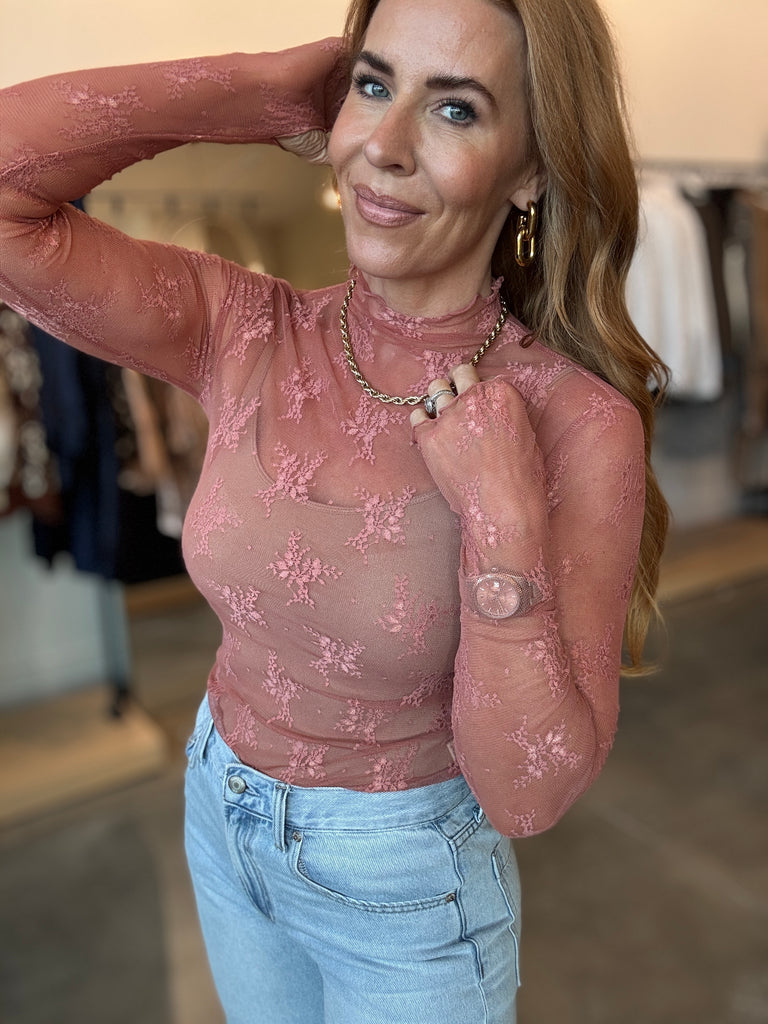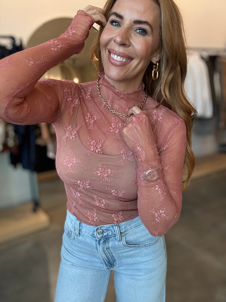 Dorothy Lace Long Sleeve Top - Rose Pink