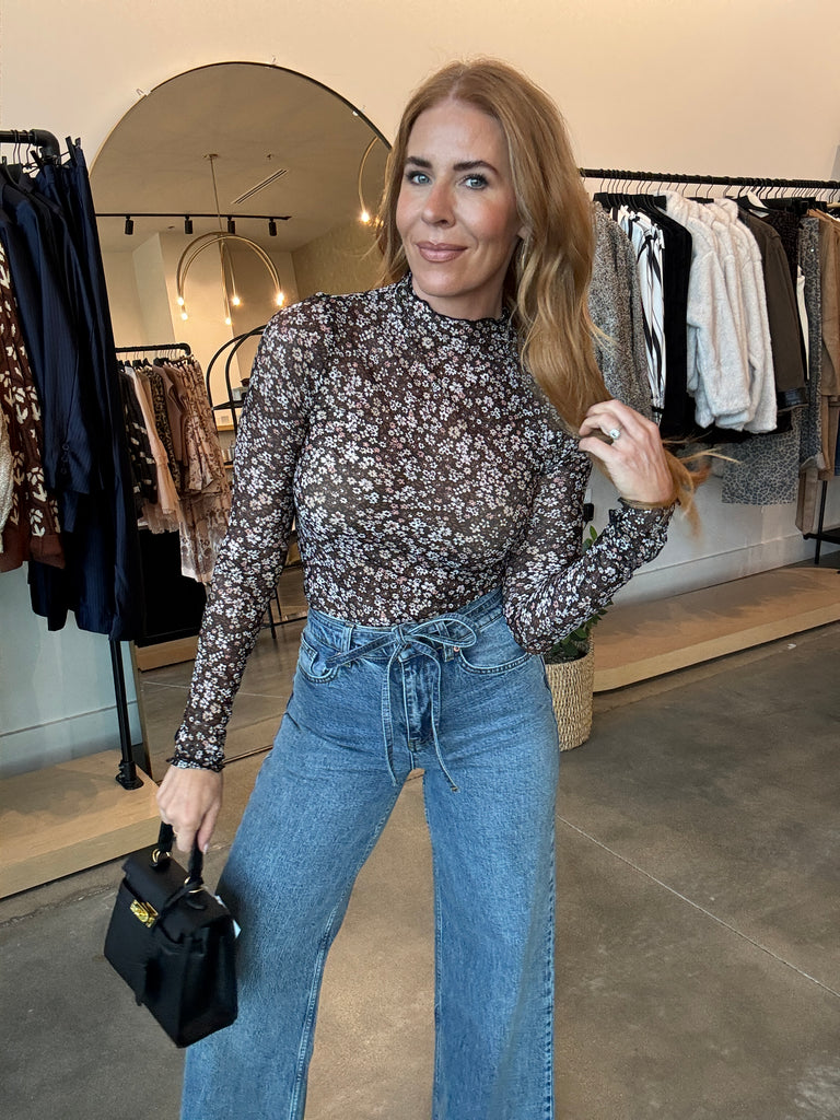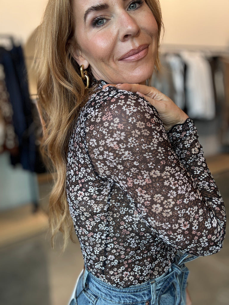 The Washburn Floral High Neck Mesh Top offers a comfy fit with a high neck design that’s sure to turn heads. Fits true to size and works perfectly layered under a vest or cardigan. Pair it with your favorite denim or leather for an effortlessly cool look.