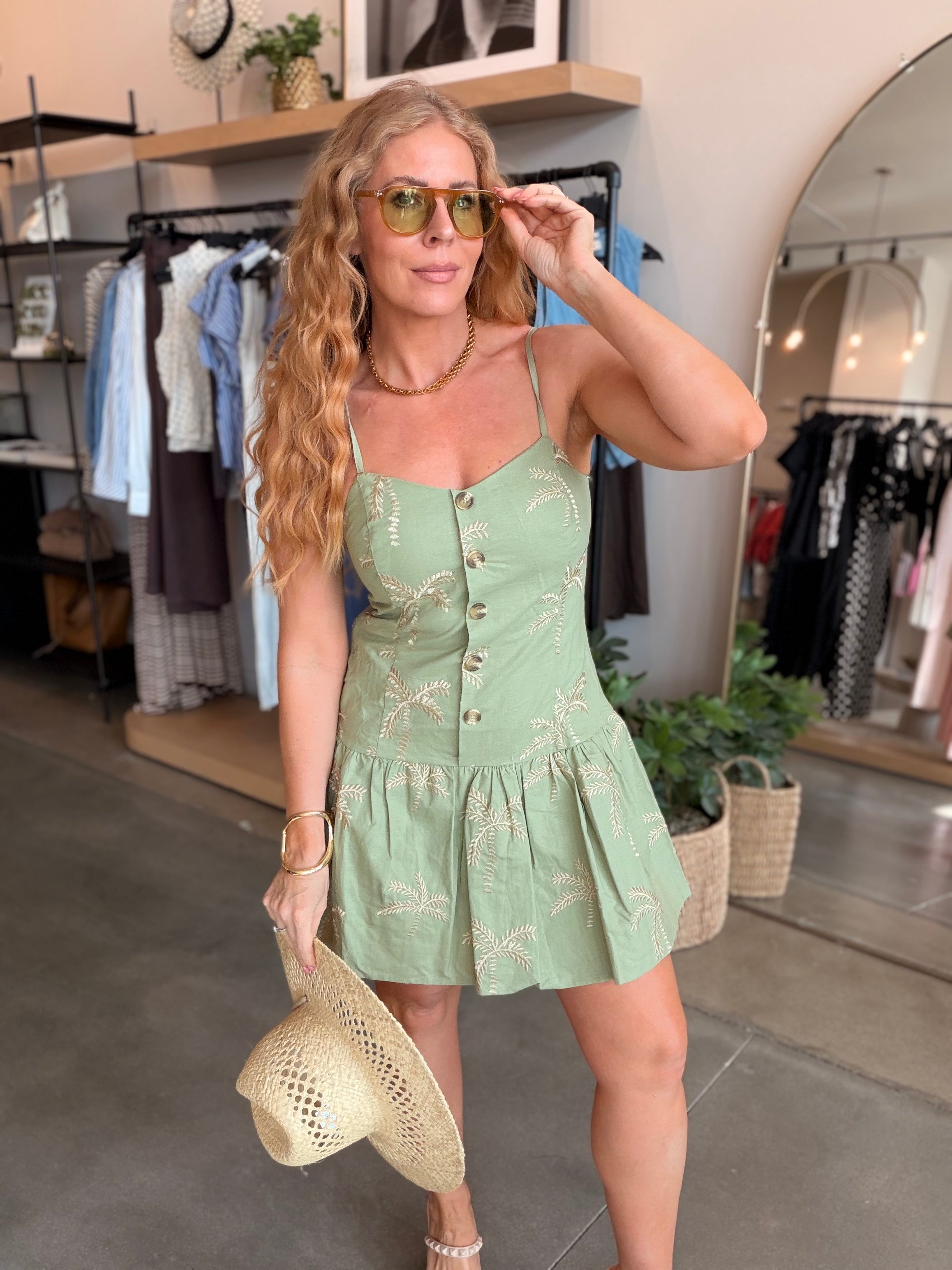 Lana Dropped Waist Palm Dress