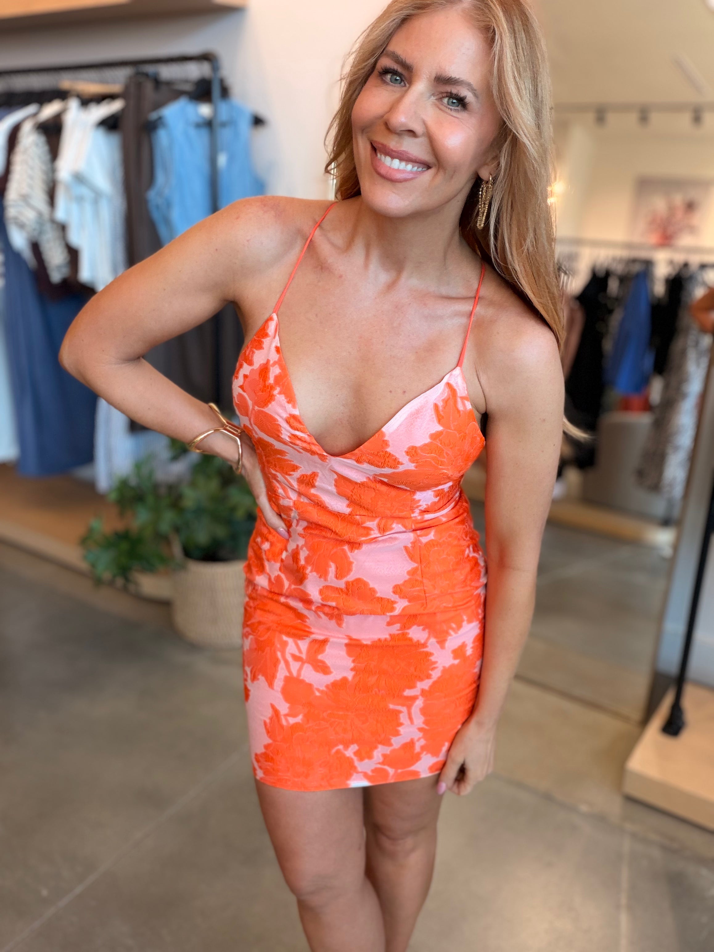 Gwen Floral Orange & Pink Dress