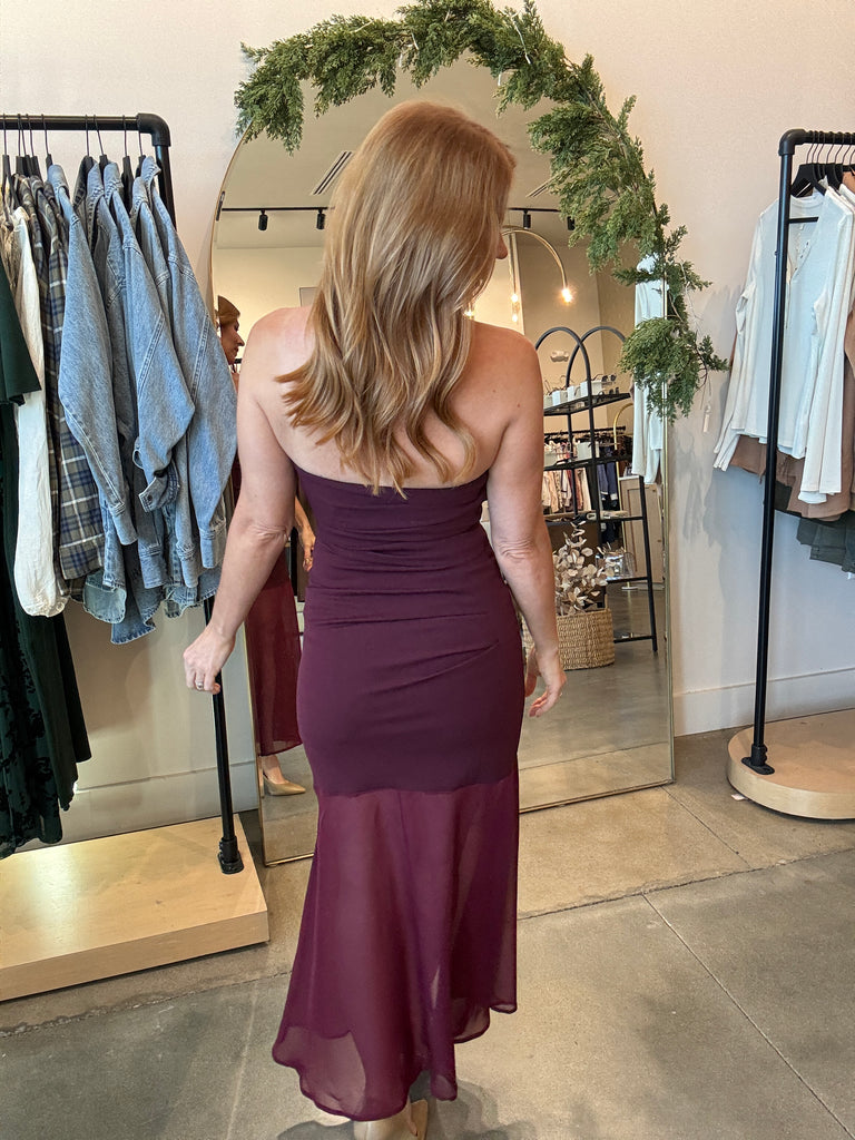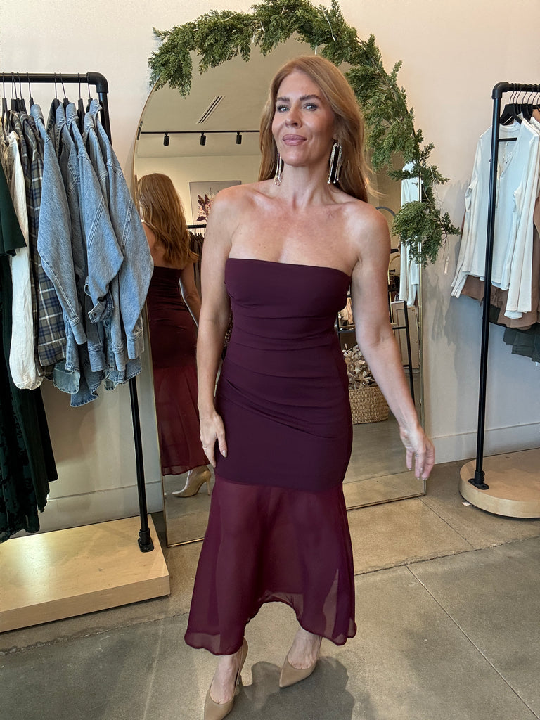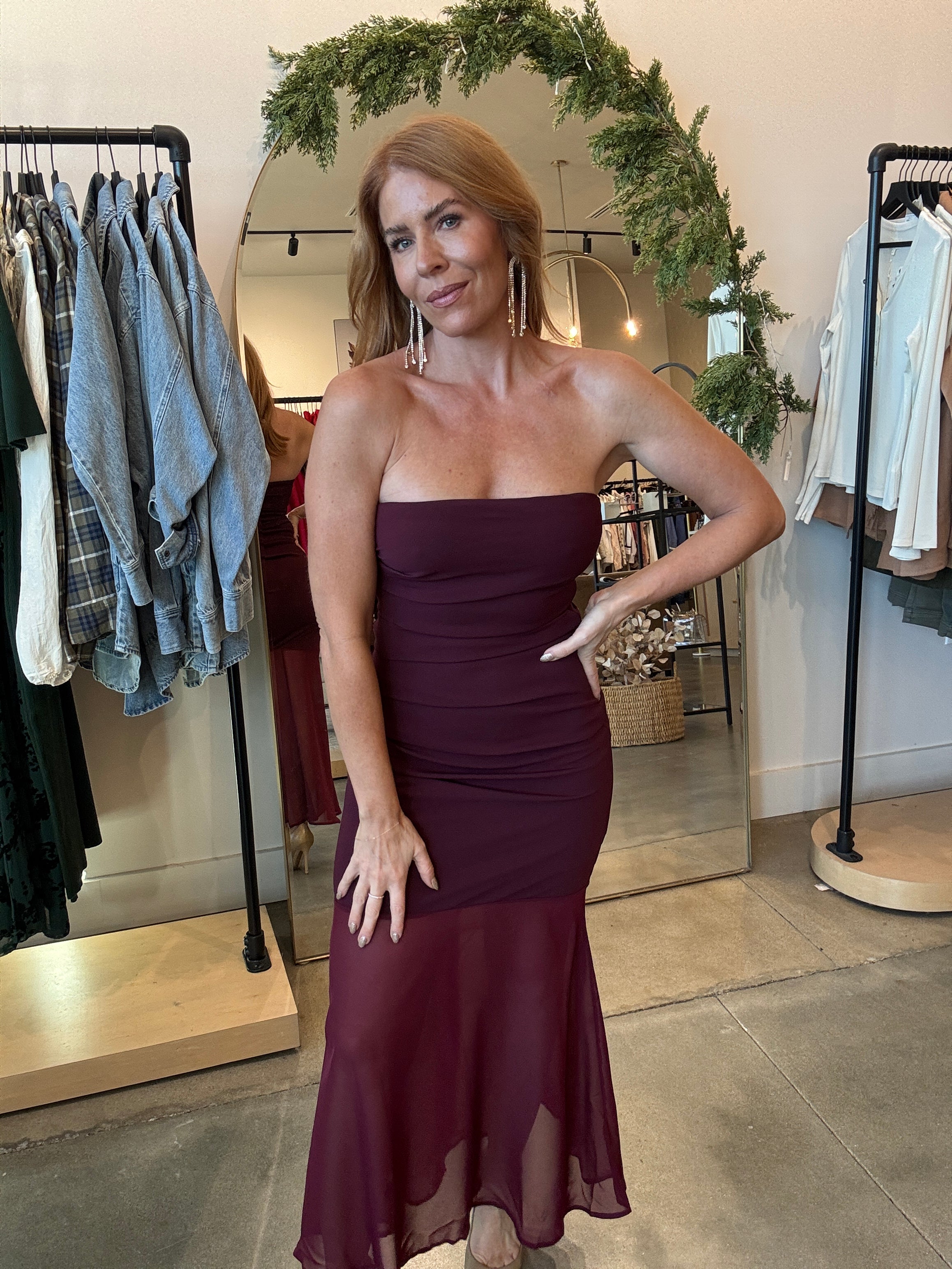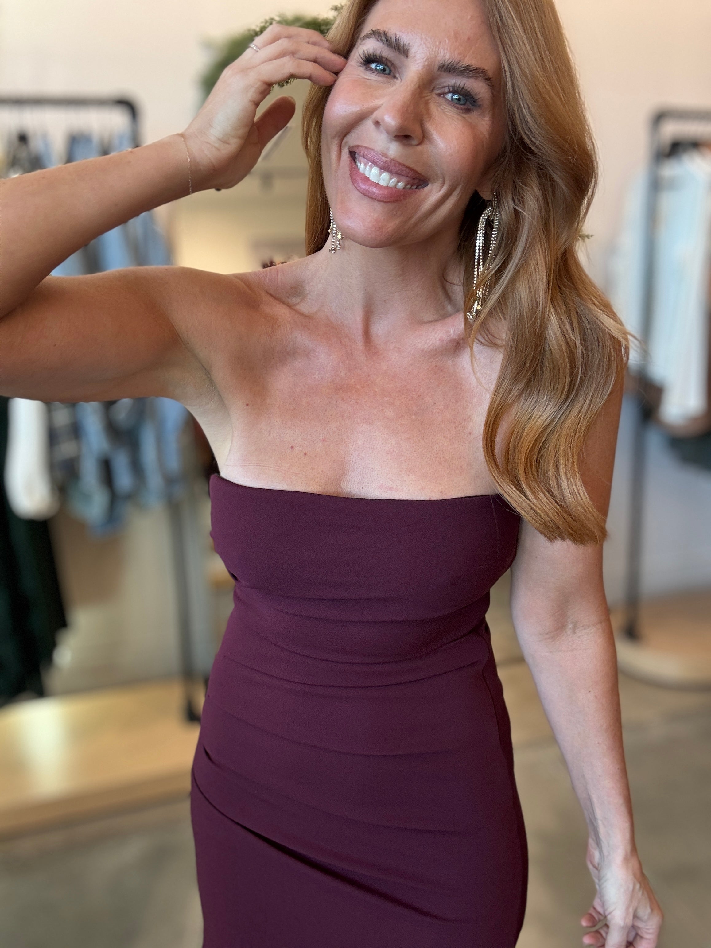 Slip into the Kaia and let that rich burgundy hue do all the talking. Strategic side pleating creates a silhouette that's equal parts chic and comfortable, while the fitted stretch fabric moves with you. A discreet side zipper keeps things sleek and simple. Perfect for nights when you want to feel effortlessly polished.