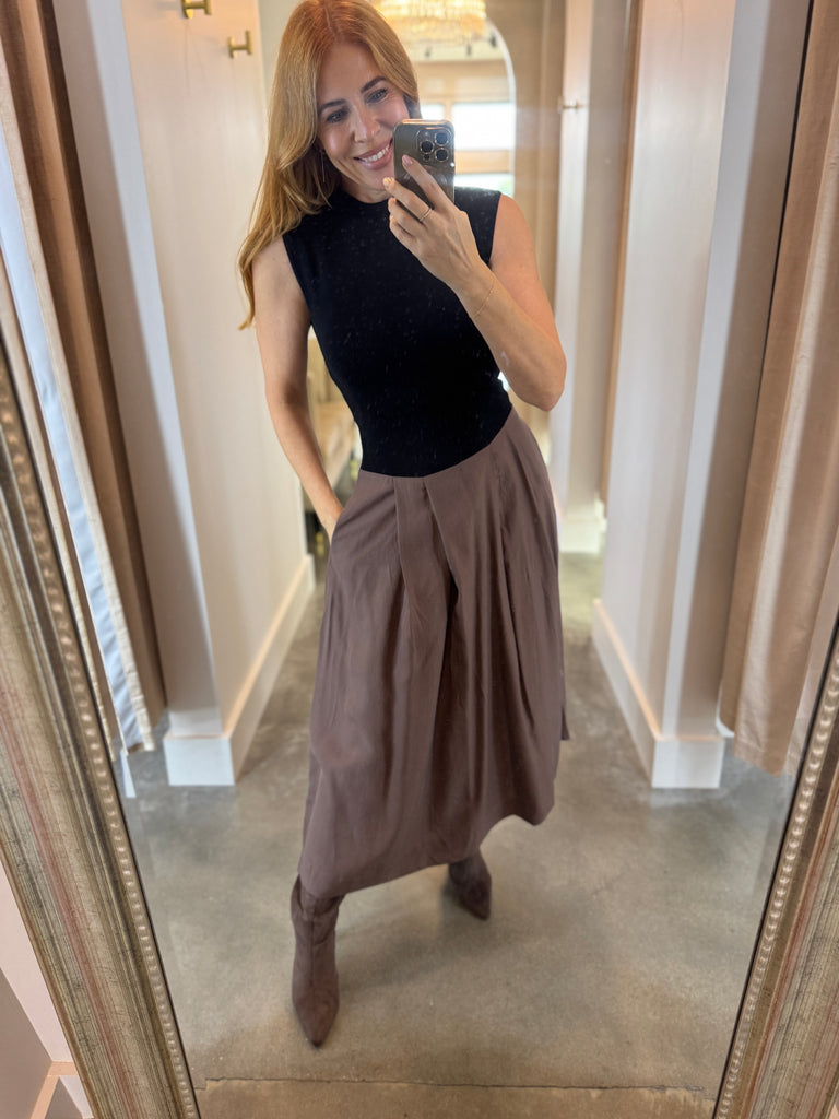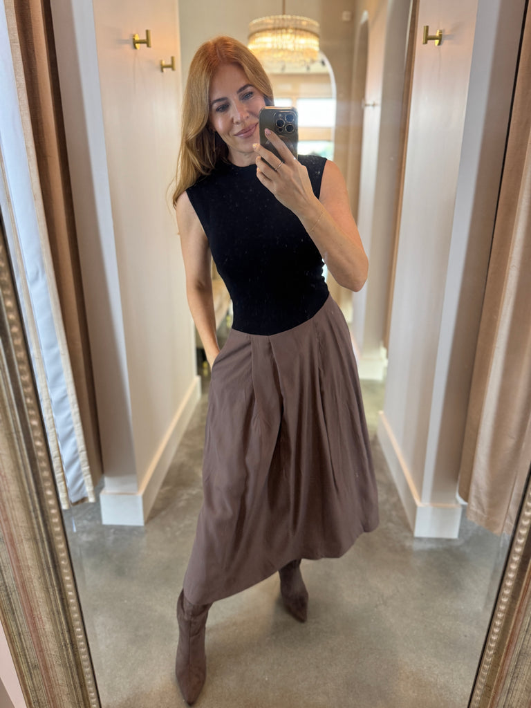 The Francine Sleeveless Black & Brown Dress is a cozy, flattering must-have for fall. It features a side zipper for quick dressing. Pair it with your favorite boots, heels, or a leather jacket for a fun, stylish look.