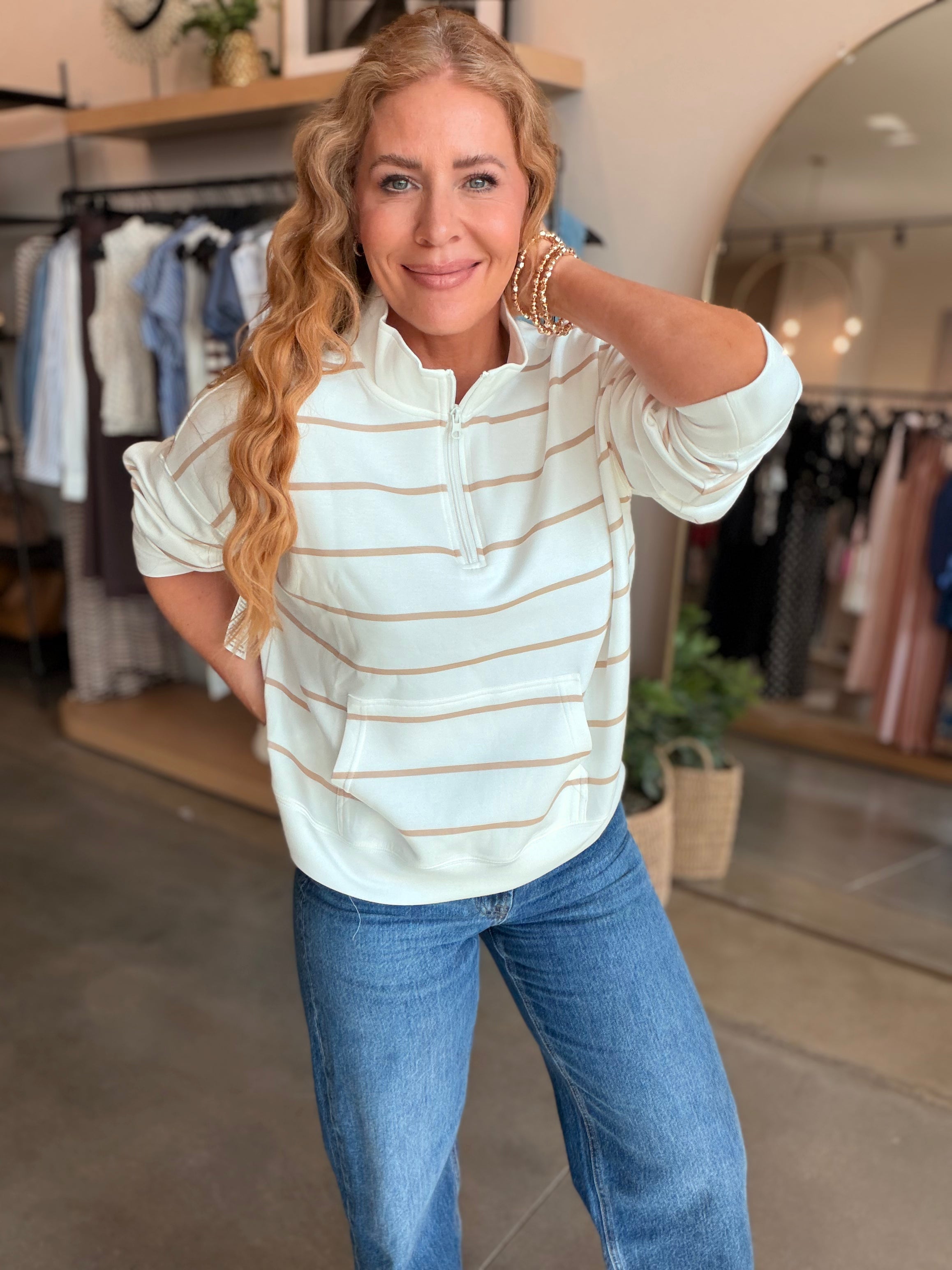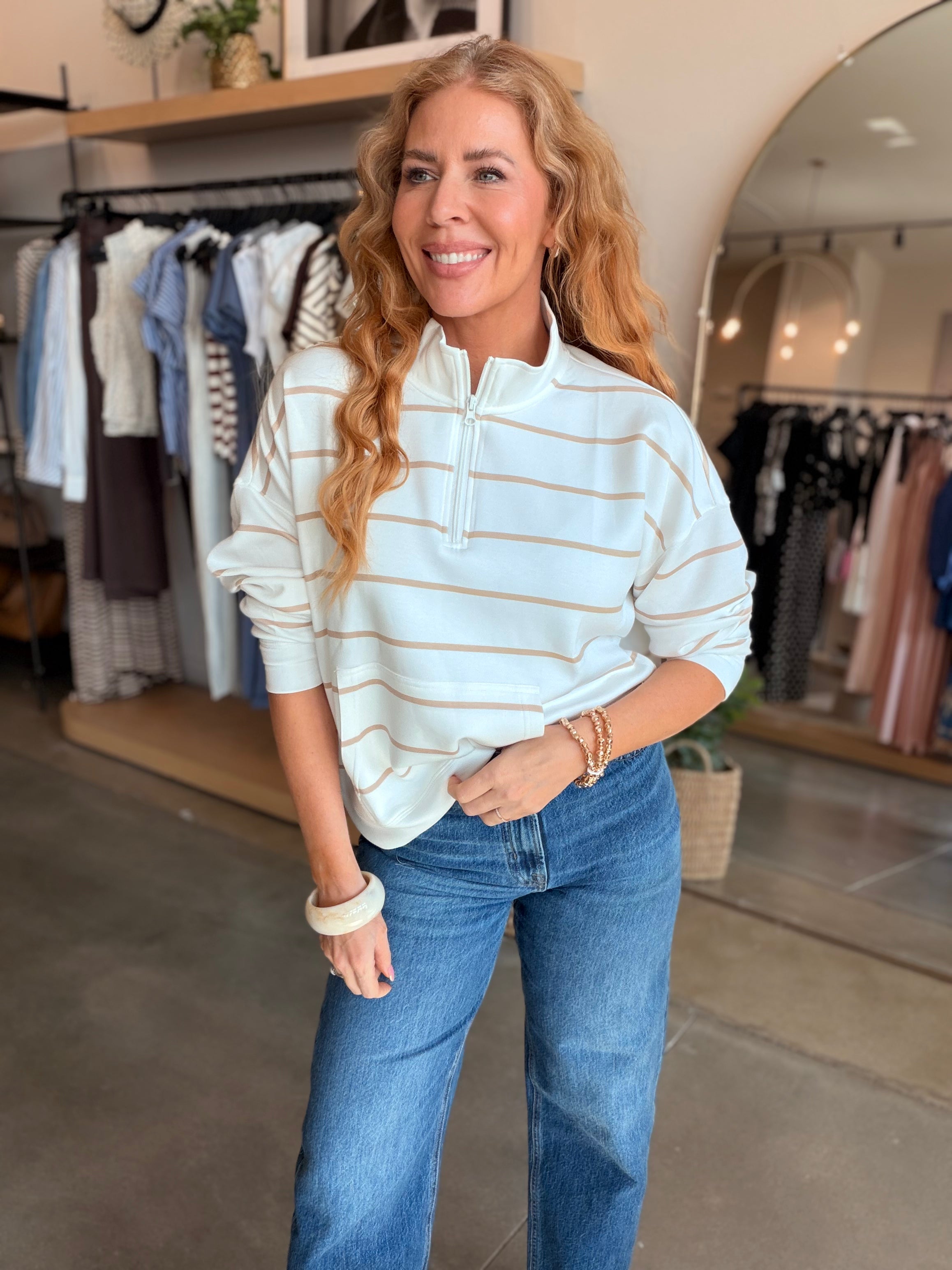 Bright Ivoryv Stripe Cloud Quarter Zip