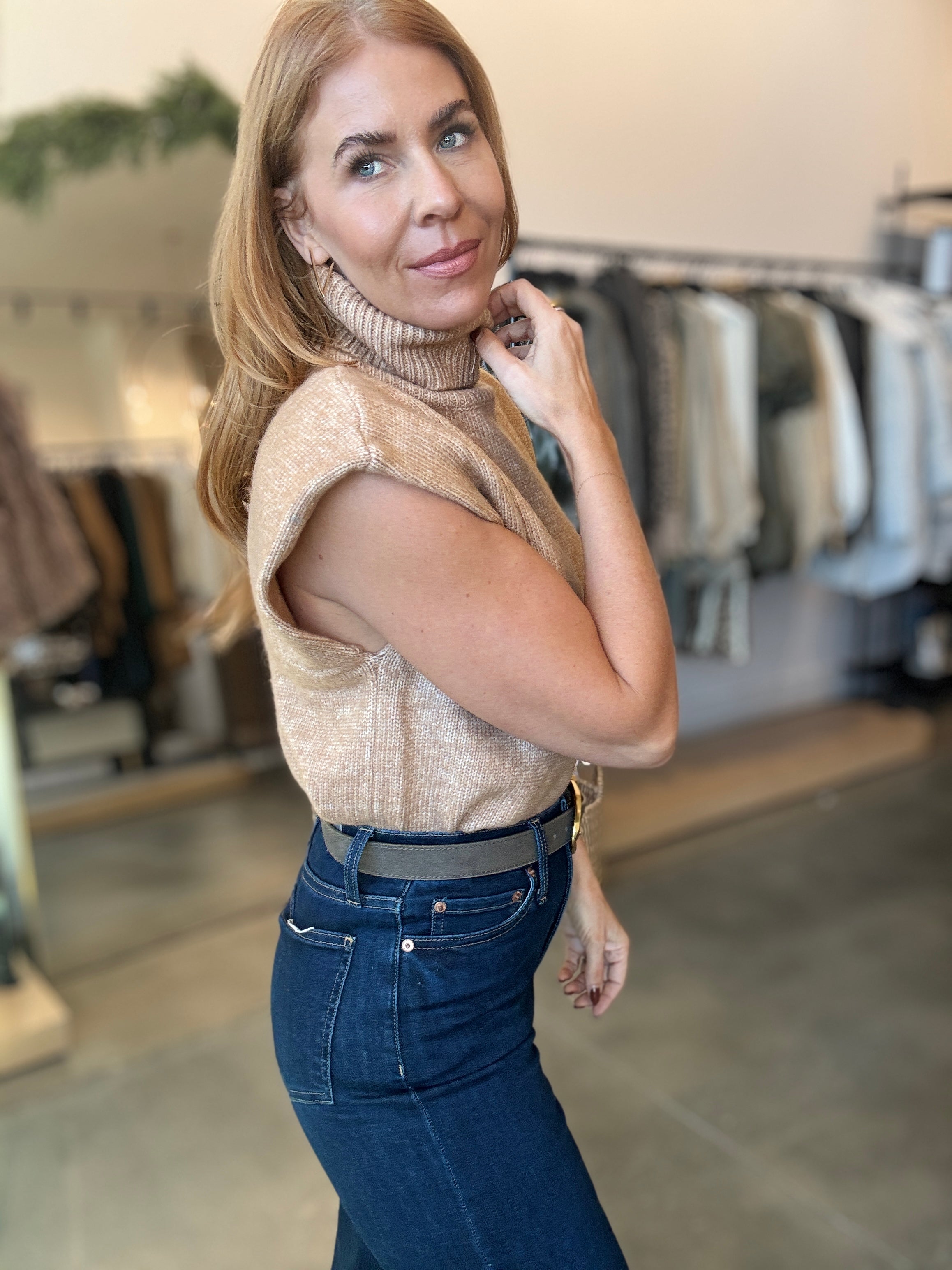 This tan turtleneck is your new secret weapon for effortless style. The built-in shoulder pads deliver serious silhouette magic—whether you're rocking it true to size for a polished vibe or going oversized for that laid-back cool factor. Either way, you're getting a sweater that actually makes you feel amazing. Cozy, chic, and surprisingly versatile.