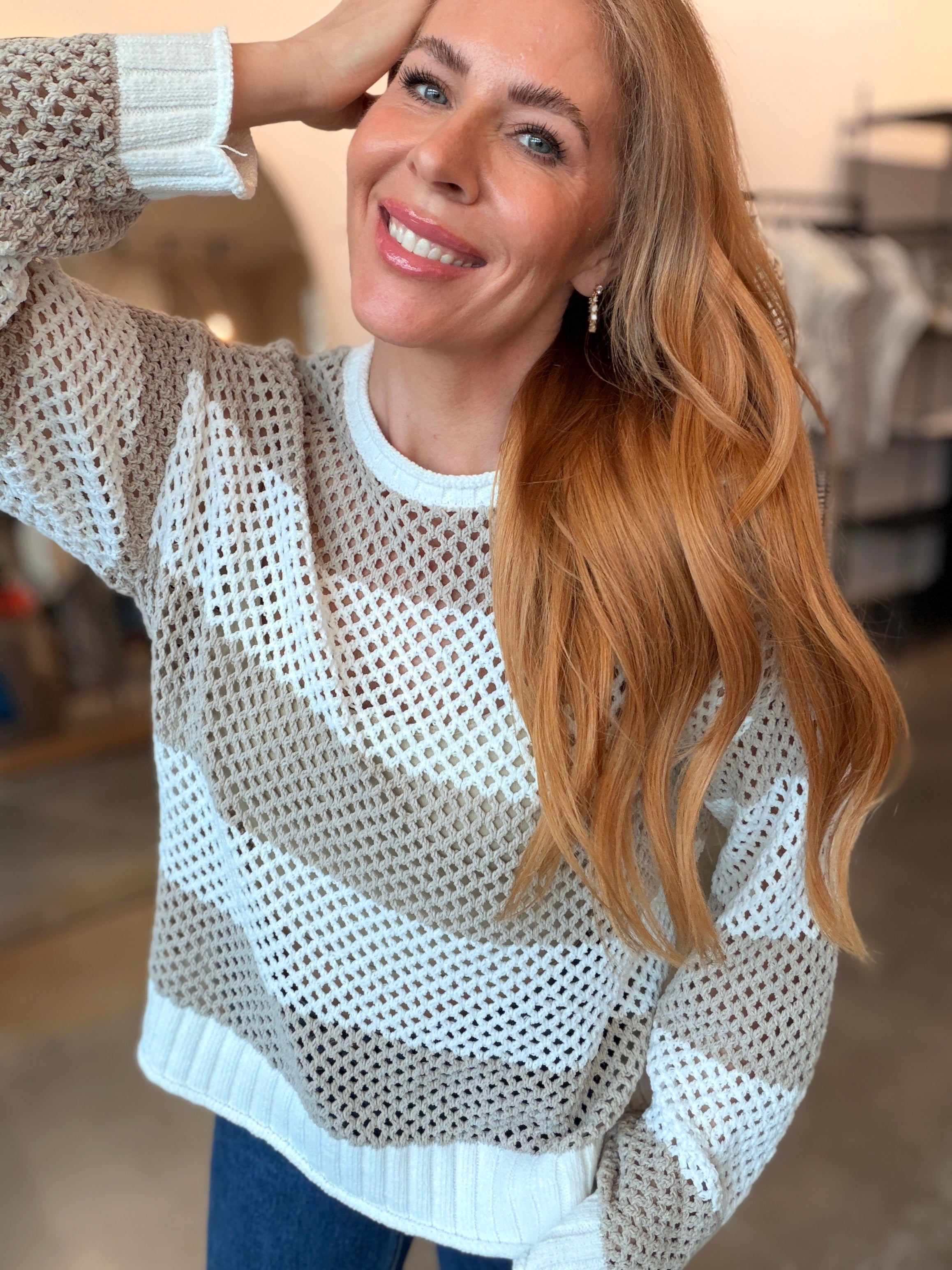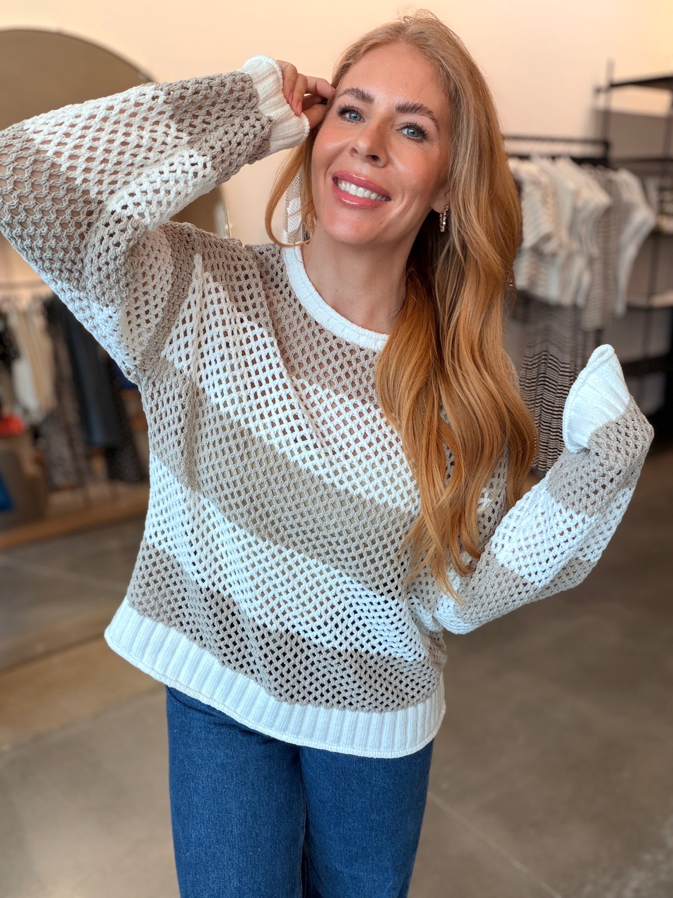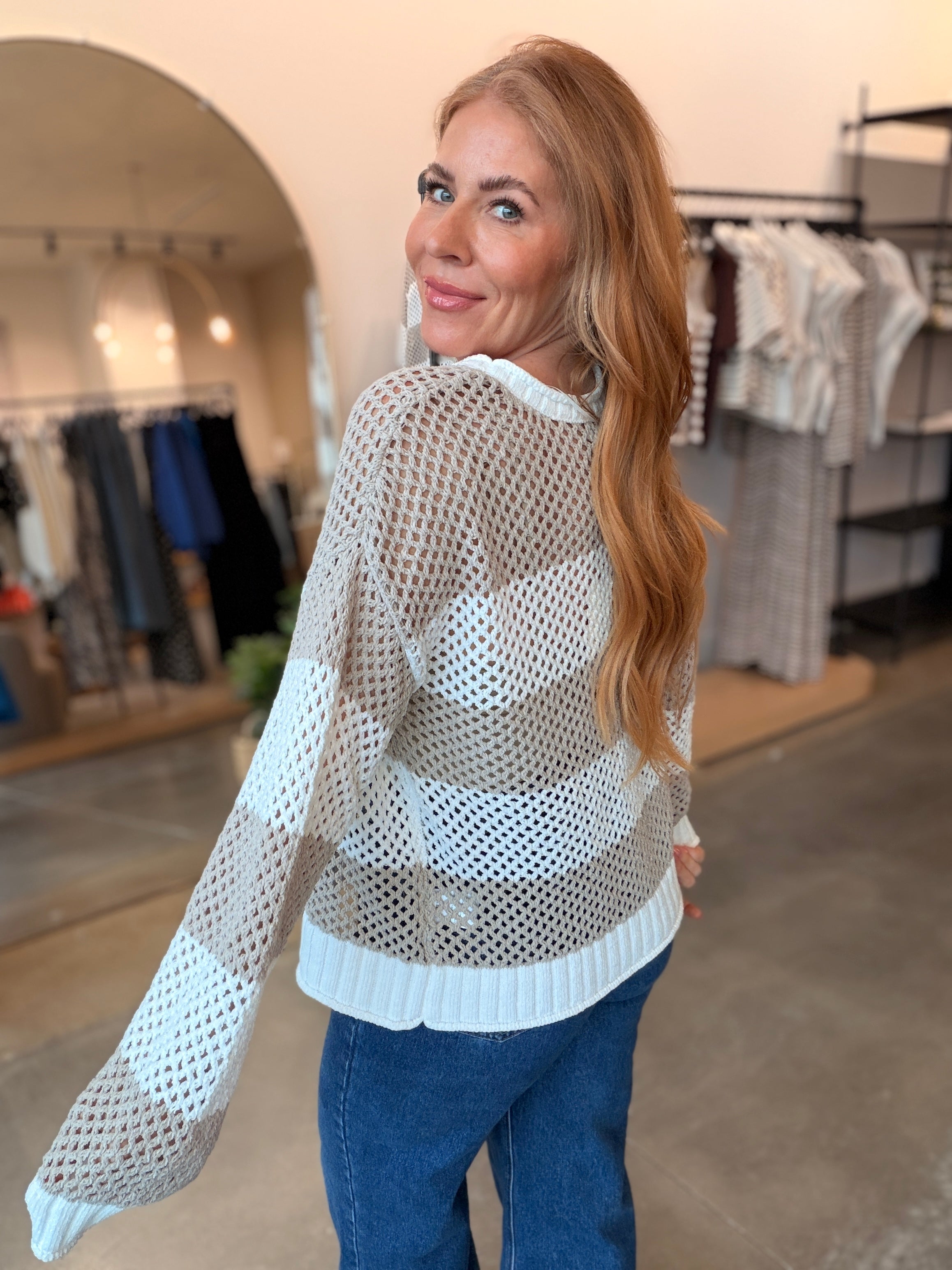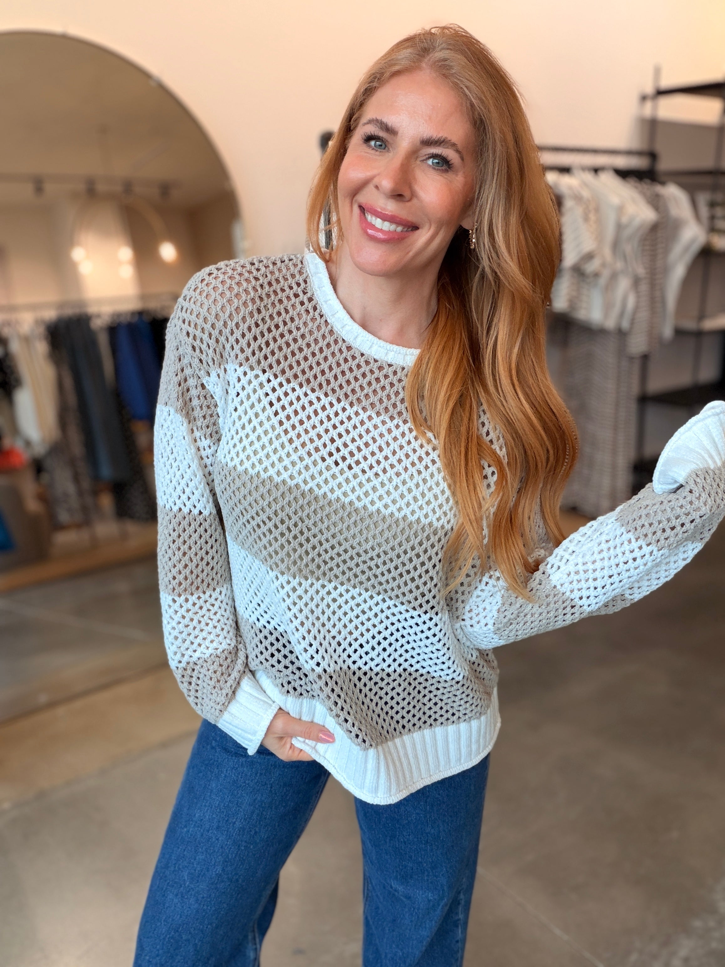 Layer this breezy open knit sweater over everything come warm weather. Pair it with wide-leg jeans for spring vibes, throw it on over shorts when summer hits, or wear it as a chic swimsuit cover-up. The loose, airy knit keeps you cool while looking effortlessly put-together.